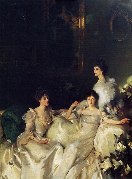 In any case, dwarfing both canvases and hung between them is Sargent’s gargantuan doily of a painting that depicts the three Wyndam sisters.
