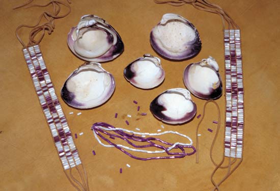 Wampum beads were carved from the shell of the quahog clam. In colonial New Amsterdam, they were made into ropes, then used as currency and, for Native Americans, had a ceremonial function. The purple shell was more valuable than the white. Both are beautiful, even if their value is long gone.