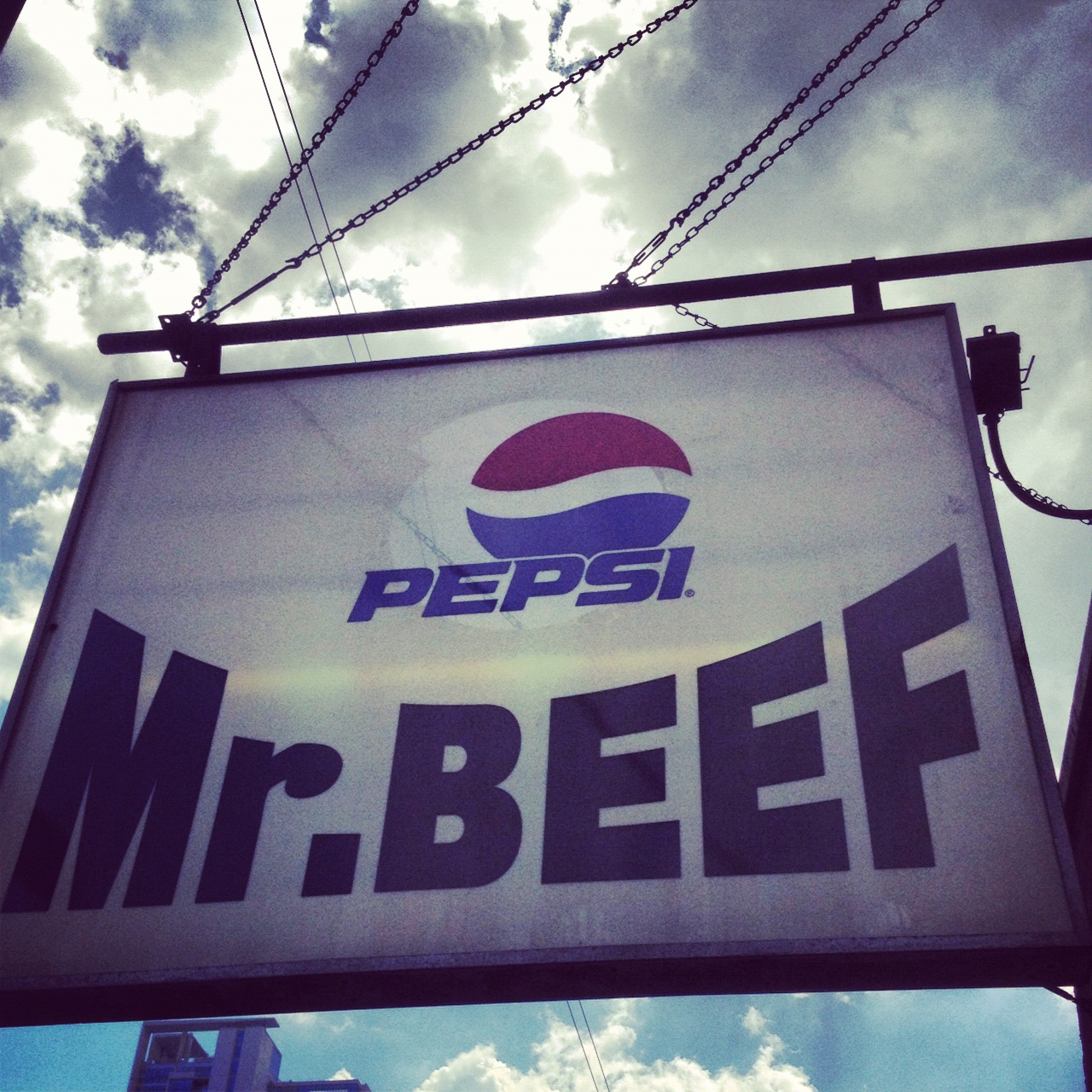 I rolled us into Chicago and Gil headed us out, and in between we visited one of the city’s major attractions, just beneath the Navy Pier and the Sears Tower: Mr. Beef, the downtown locus of all that is juicy and meaty and our first destination whenever we’re in town. The Italian Beef Sandwich pairs hot shaved tenderloin with a melange of finely diced vegetables (called giardinera, if you must know) and a soft bun, all of it dipped in a special beefy broth which runs down your chin with each bite. Crush a vanilla milkshake at the same time and go take a nap.