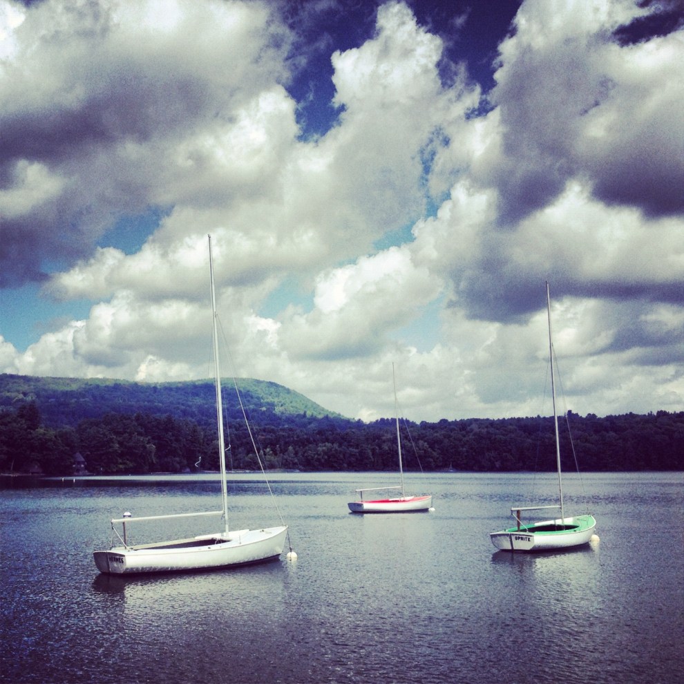 Yesterday I described the tiny Mahkeenac Boat Club in the Berkshires — Lenox or Stockbridge? if you know, clue me in. Here are the little boats, courtesy of Maud. It really was a timeless scene.