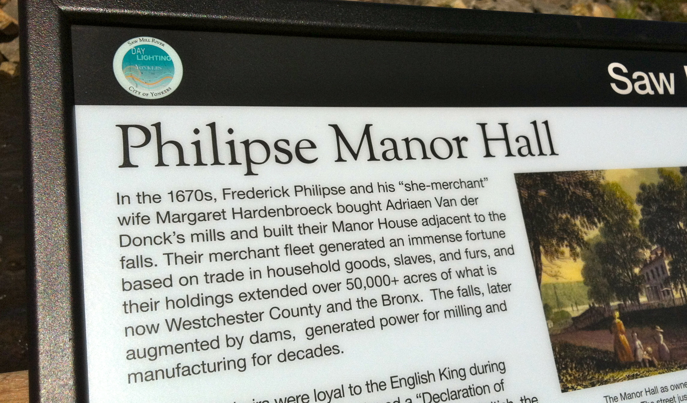 Flash forward one hundred years. The handsome house still stands, but Yonkers has been bit by the bug of industry, in a big way. Everything from pencils to hats to elevators are making residents rich, with factories that employ the Nepperhan’s surging water power. The river grows polluted by factory waste. People who live and work on its banks get sick. The city fathers won’t have it. By 1868, Philipse Manor Hall has been transferred from private hands and is now Village Hall. What shall we do about the river?