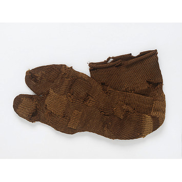 This two-toed number (sandal-ready) came off of a single needle but is remarkably like the knitting we see today. It was recovered in the Christian burial ground of the late Roman period in the present day city of Bahnasa in Egypt, made between 410-540 ad.