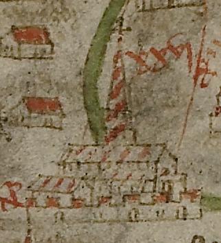 Across the Gough Map’s weathered face, pictographs of tiny towns and roads, along with place denotations.