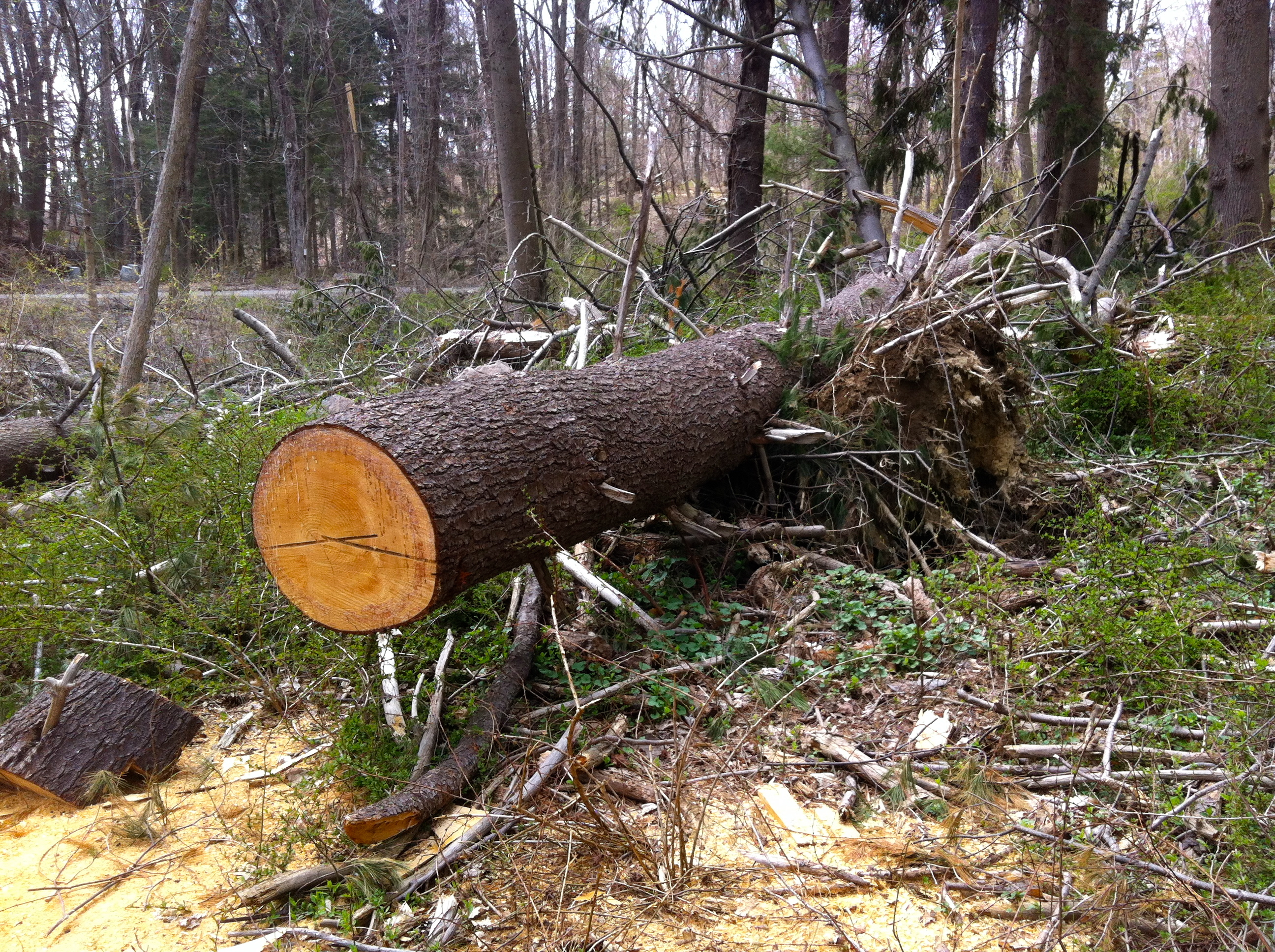 We’re still looking at the downed trees in our front forty, felled during Sandy. Our neighbor took home a dozen planks from one, and it is pretty great that he could use them to build raised beds for a garden this spring. A happy eventuality.