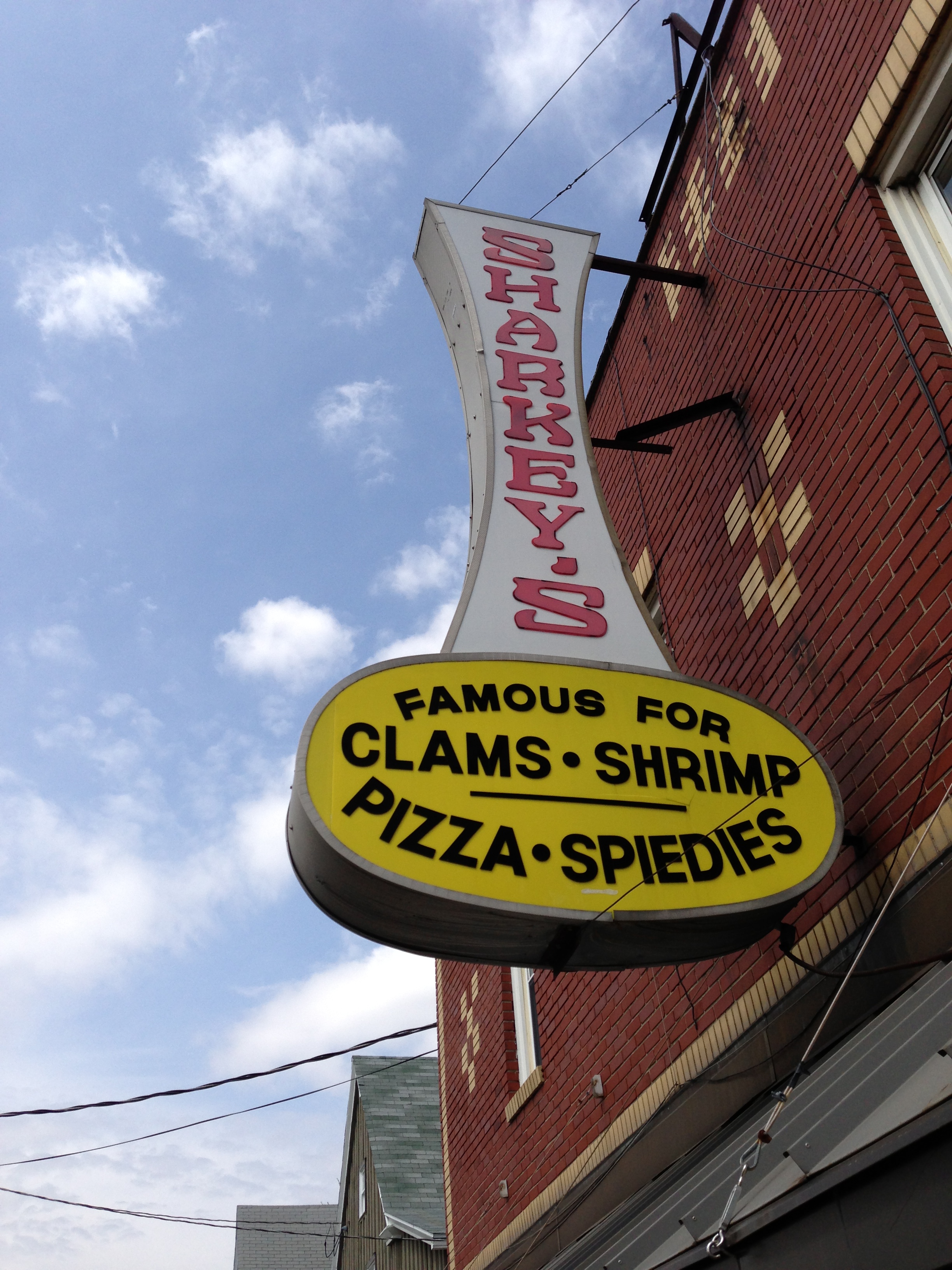 Spiedies are a kind of marinated pork kebab that you squeeze between pieces of cheap, soft white bread. For some reason Sharkey’s also specializes in clams “available to go by the dozens, hundreds and bags,” boasting on its menu that, “The clams you eat today slept in the bay last night.” Since the only water nearby is the muddy, meandering Susquenna River, that gave us pause.