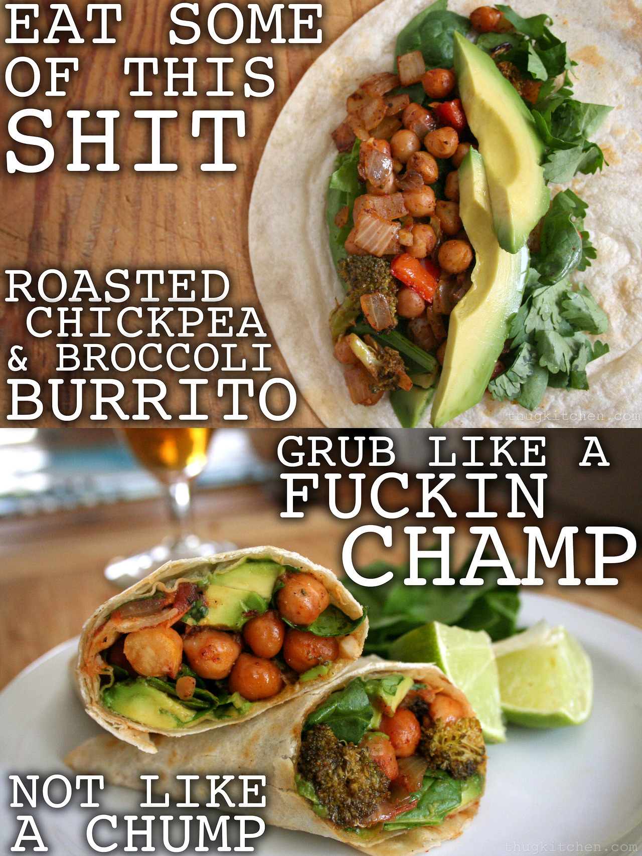 Thug actually is vegan, if you scroll down the site to take a better look, past the blast of biting admonitory locution. No fathers in man-aprons grilling steaks here. Instead, dishes a lady would love: lavender lemonade: “Calm Your Bitch Ass down like a Boss-Drink Some Fucking Flowers” runs the heading, and the recipe advises, “This is some good shit to make when you are feeling bougie as fuck.” Roasted strawberry and coconut salad inspires this heading: “Eat a Goddamn Salad. Fuck it-Eat Ten Then Brag about it.” But TK told the NY Daily News, “You don’t have to be fancy to give a f— about what you eat.”