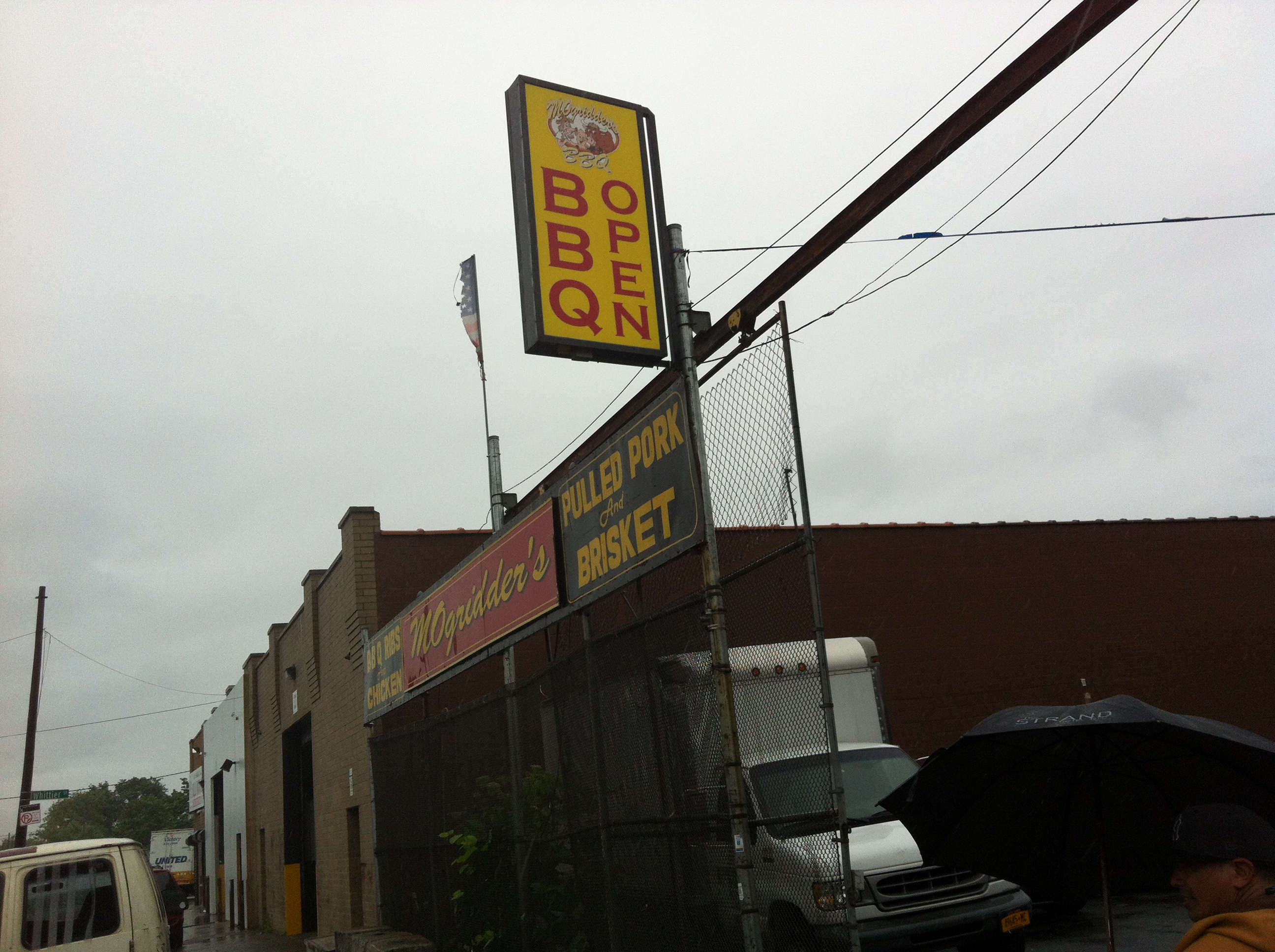 Mo Gridder’s is probably the only barbeque joint, at least in New York, with its dining lounge in an auto parts store.