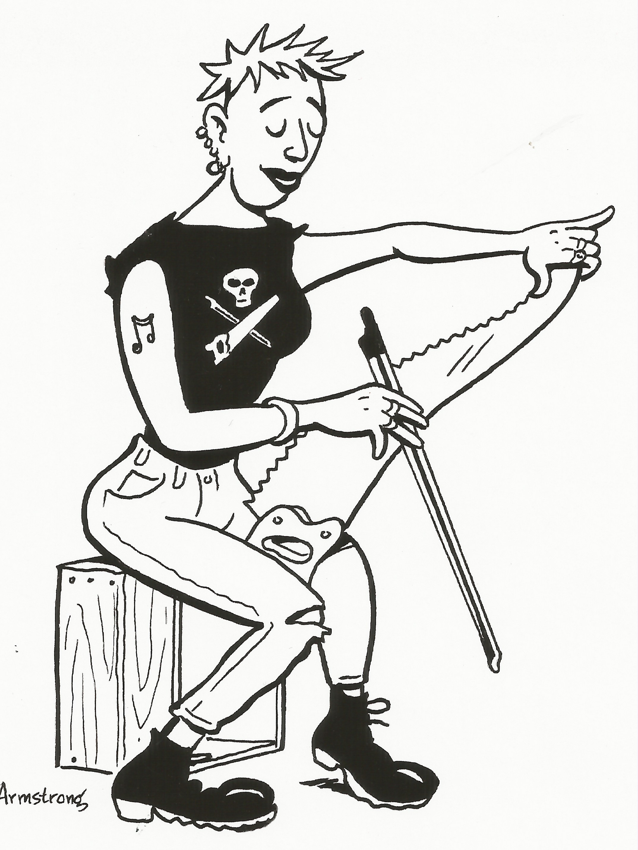 Where did this art originate, I wondered? Information abounds if you are motivated to look. The gently bent metal blade creates a keening or wavering tone when a bow is drawn across it and is capable of glissando. Marlene Dietrich entertained the troops with her saw, that I know. I actually think Wikipedia has a pretty good handle on the technicalities. Of course, you can always consult the International Musical Saw Association. (Robert Armstrong does these cheery illustrations for them.)
