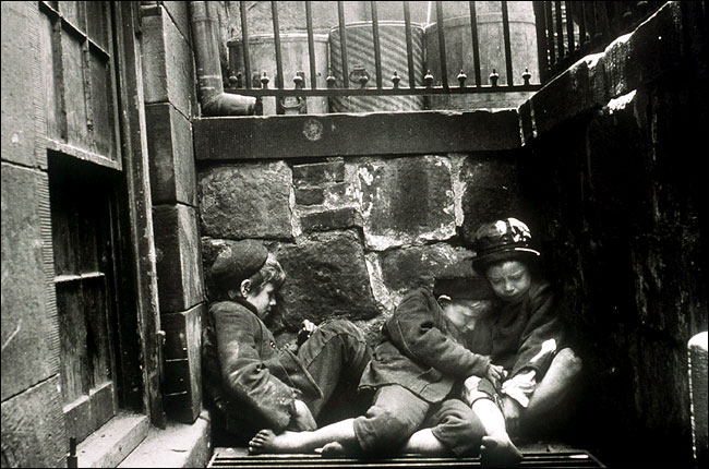 Jacob Riis made devastating pictures late in the 19th century of some of these lost New York street children.