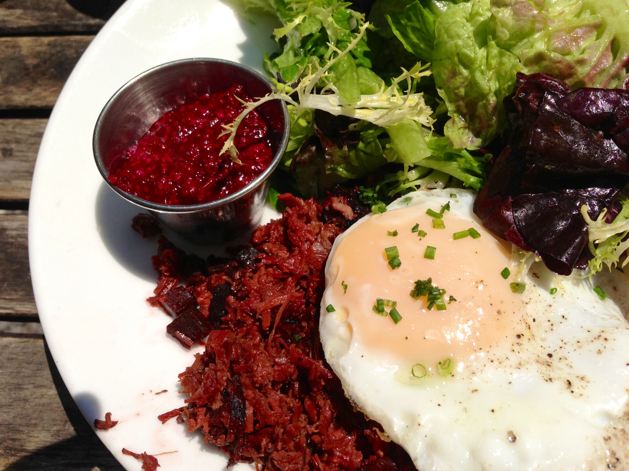 You can get a list of the local farmers who provide the kitchen’s ingredients. But that doesn’t mean anything to me unless I get a plate of food that’s good – as was my red flannel hash, its corned beef colored deeply with beets, and an even deeper burgundy horseradish served alongside. Did it taste better because the beef that was corned had roamed freely? Yes, I believe it did.