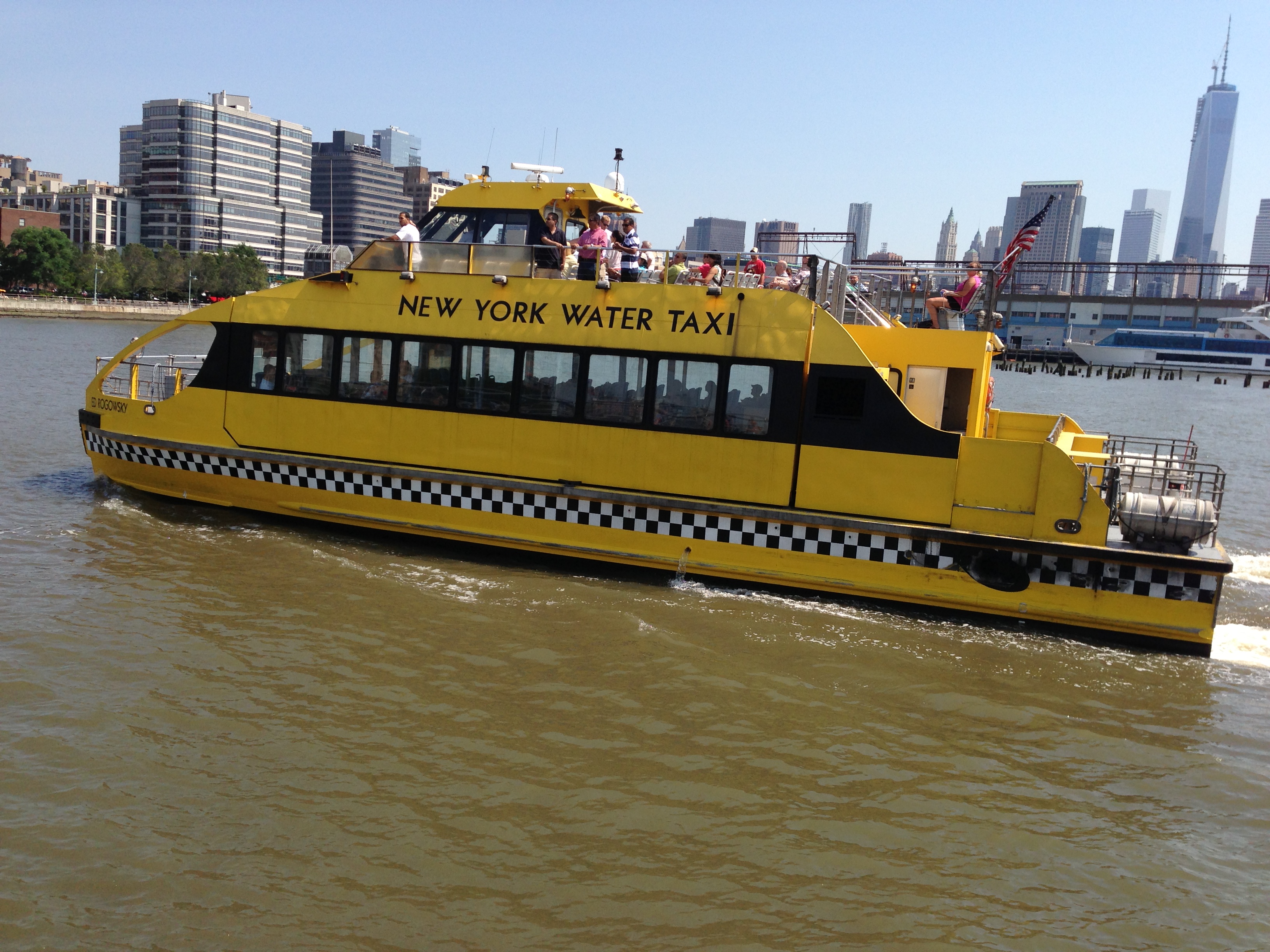 The New York Water Taxi motoring in to dock, offloading both tourists and commuters.