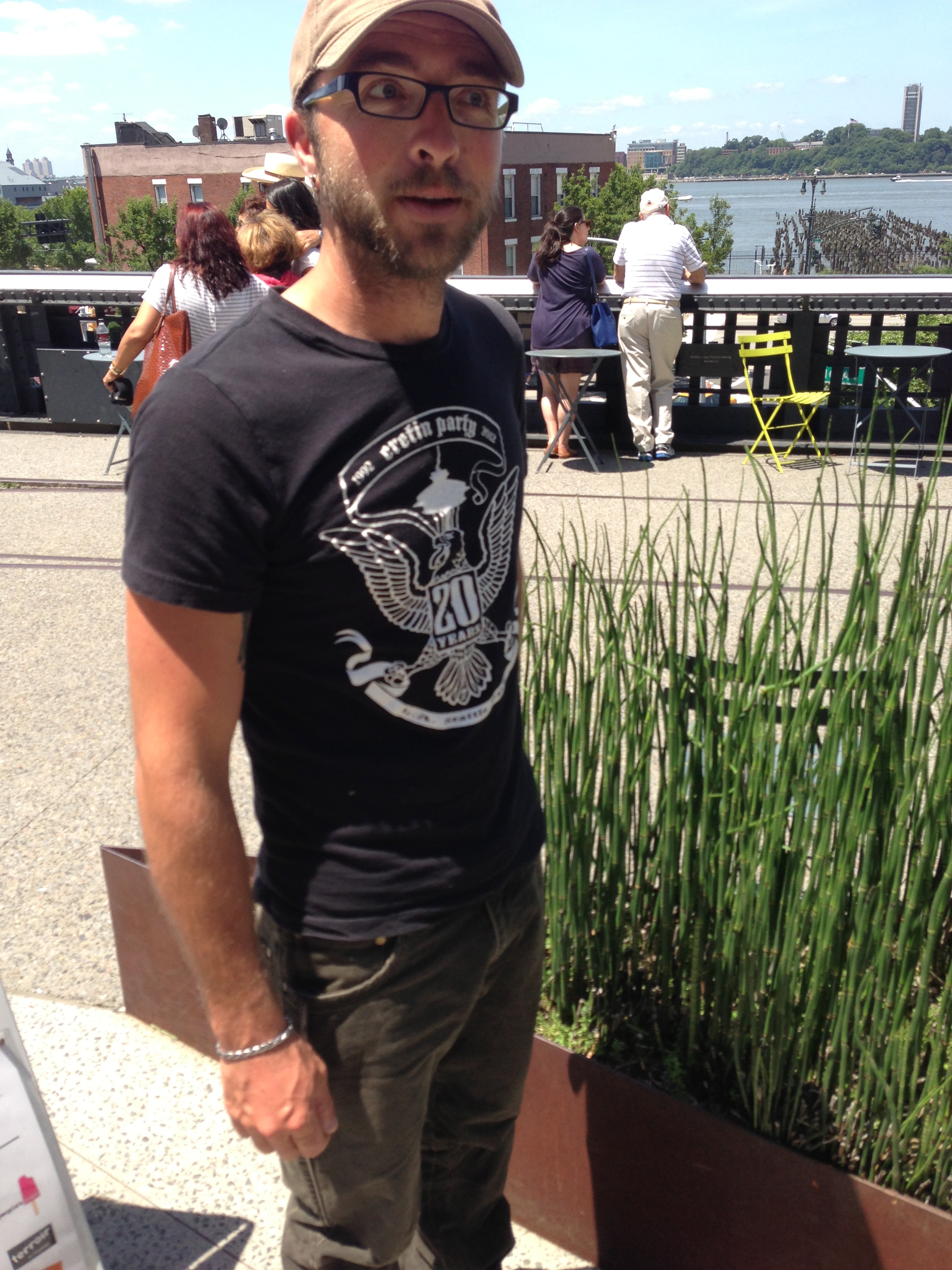 In 1980 the last train came through with a load of frozen turkeys. Then the rail bed deteriorated. Gil, who lived in the city then, says, “It was the high line, alright, everyone was getting high.” What grew there was what the High Line people now politely call a “self sown landscape.” In other words, weeds. Weeds, condoms, syringes.
