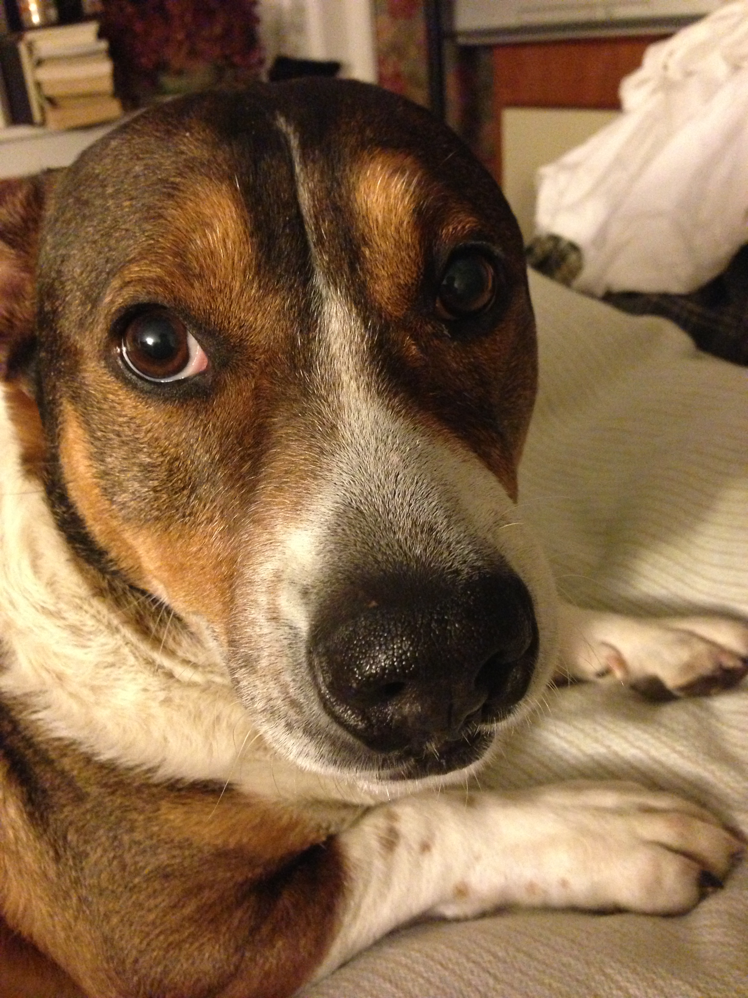 We got Oliver as a baby from a dog rescue family that was fostering his ma, a seemingly unadoptable, classic yellow cur. Father: unknown. In a White Plains kitchen squirmed eight chubby balls of fur, attached to eight wagging stumps of tails. It was January. We had run out of time to find adolescent Maud a puppy birthday present. Ollie was it. He might be a beagle, from his coloring. Who knew?