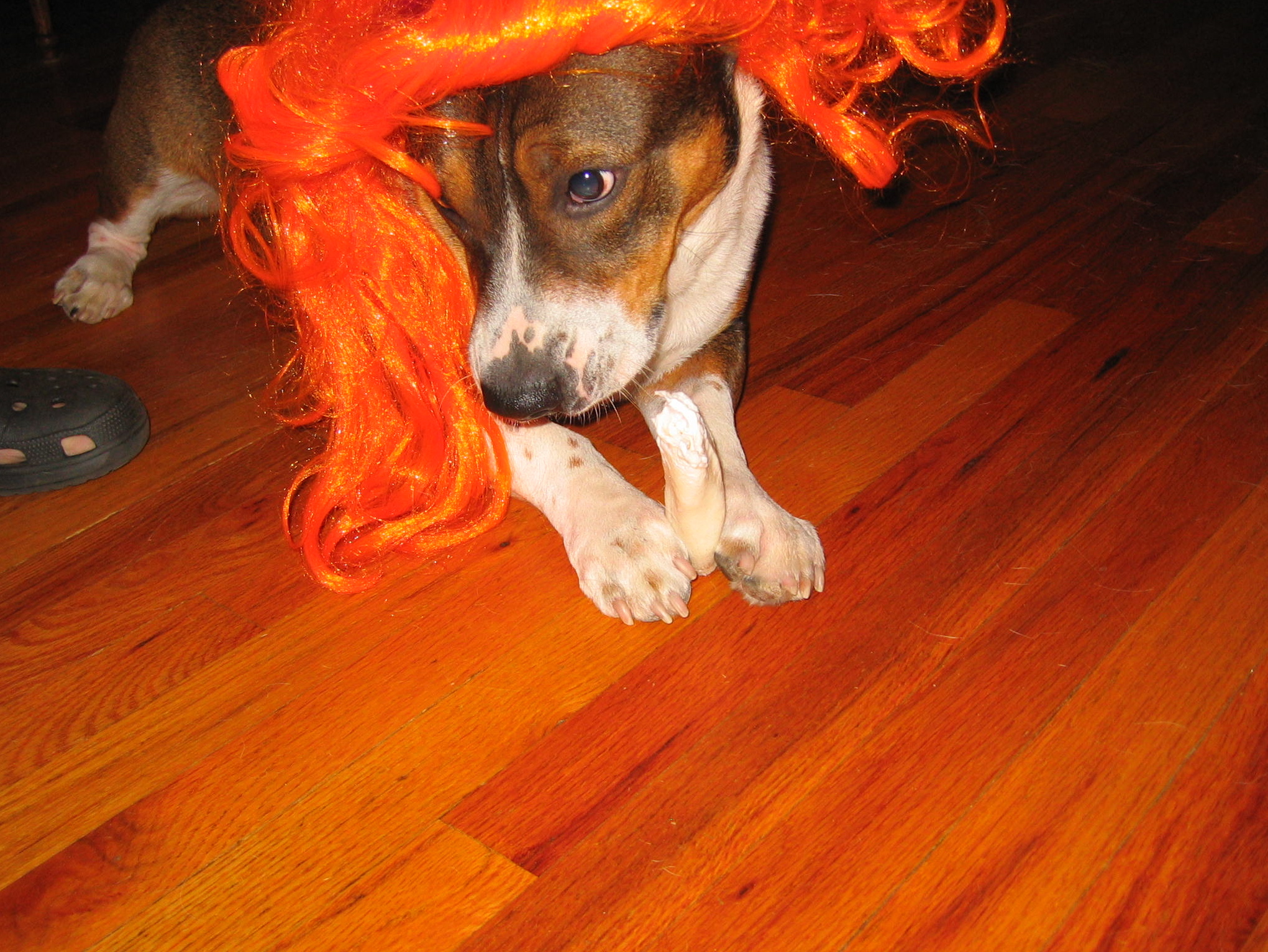 He’s was a flaming redhead for Halloween when he was about a year old.