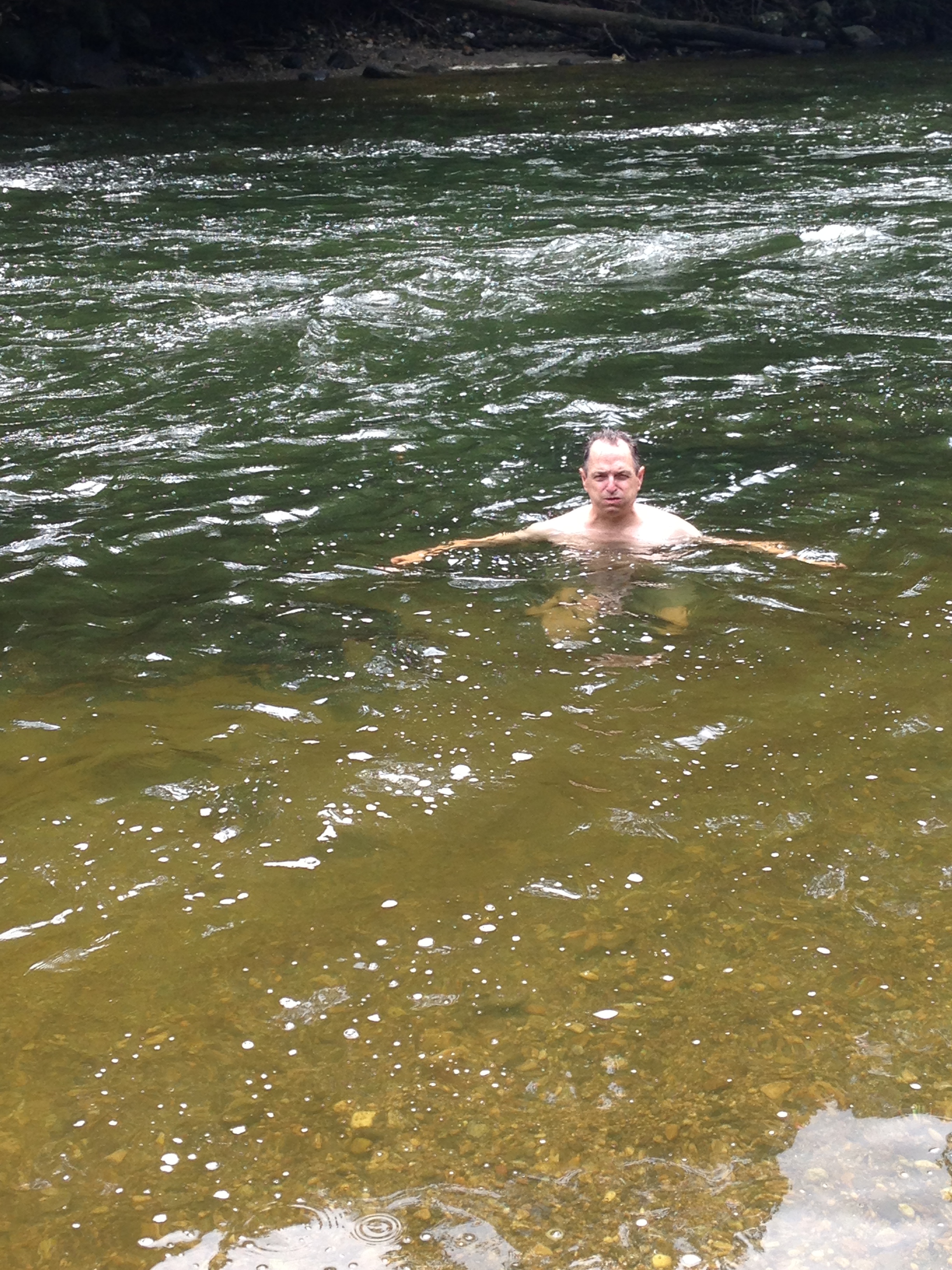 A small rapids, but too much for the canoe to manage, so we portage across the big slippery stones.