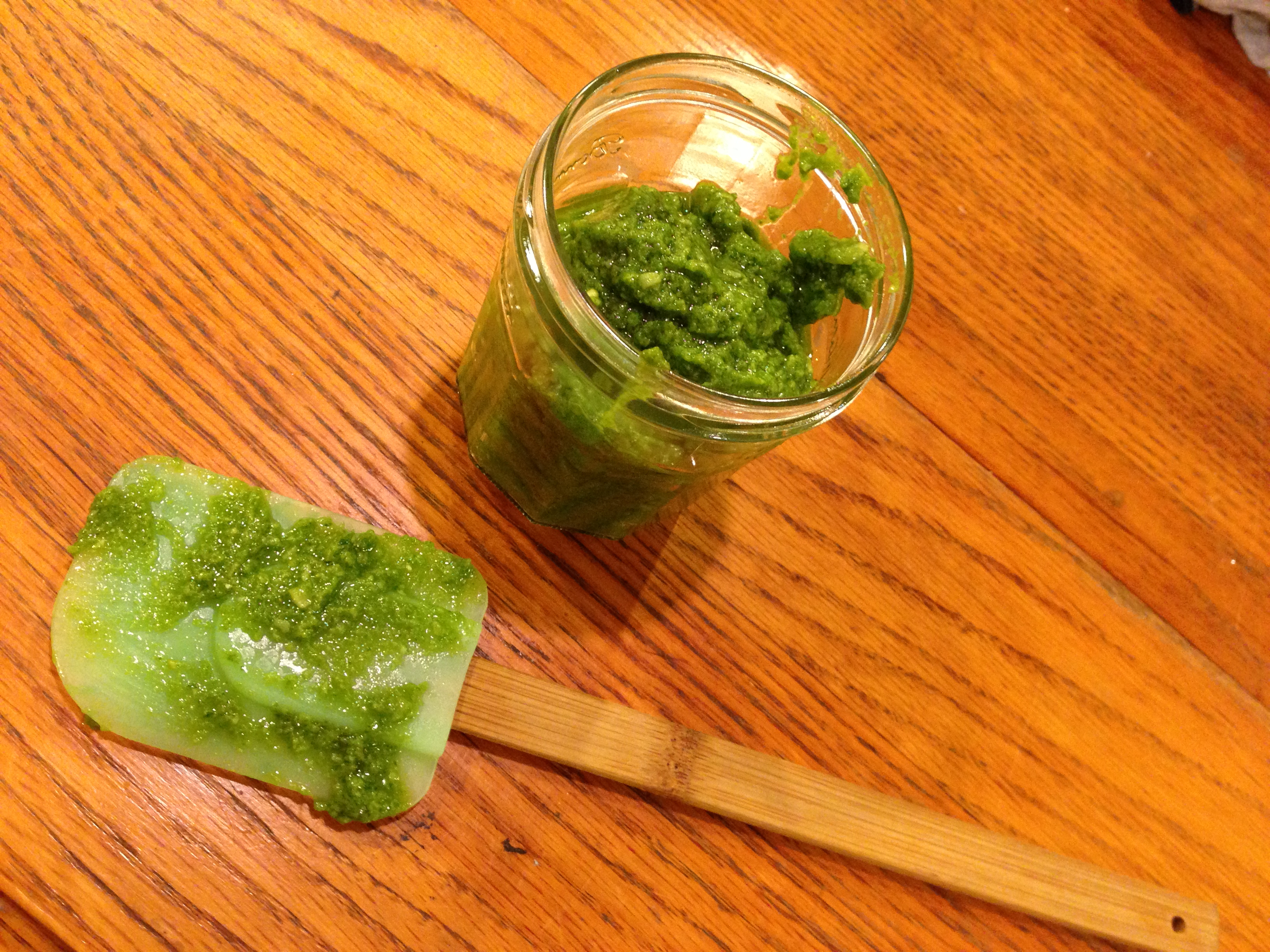 What do I do with this fresh-out-of-the-garden pesto? Throw it together with some pasta (imported, preferably).