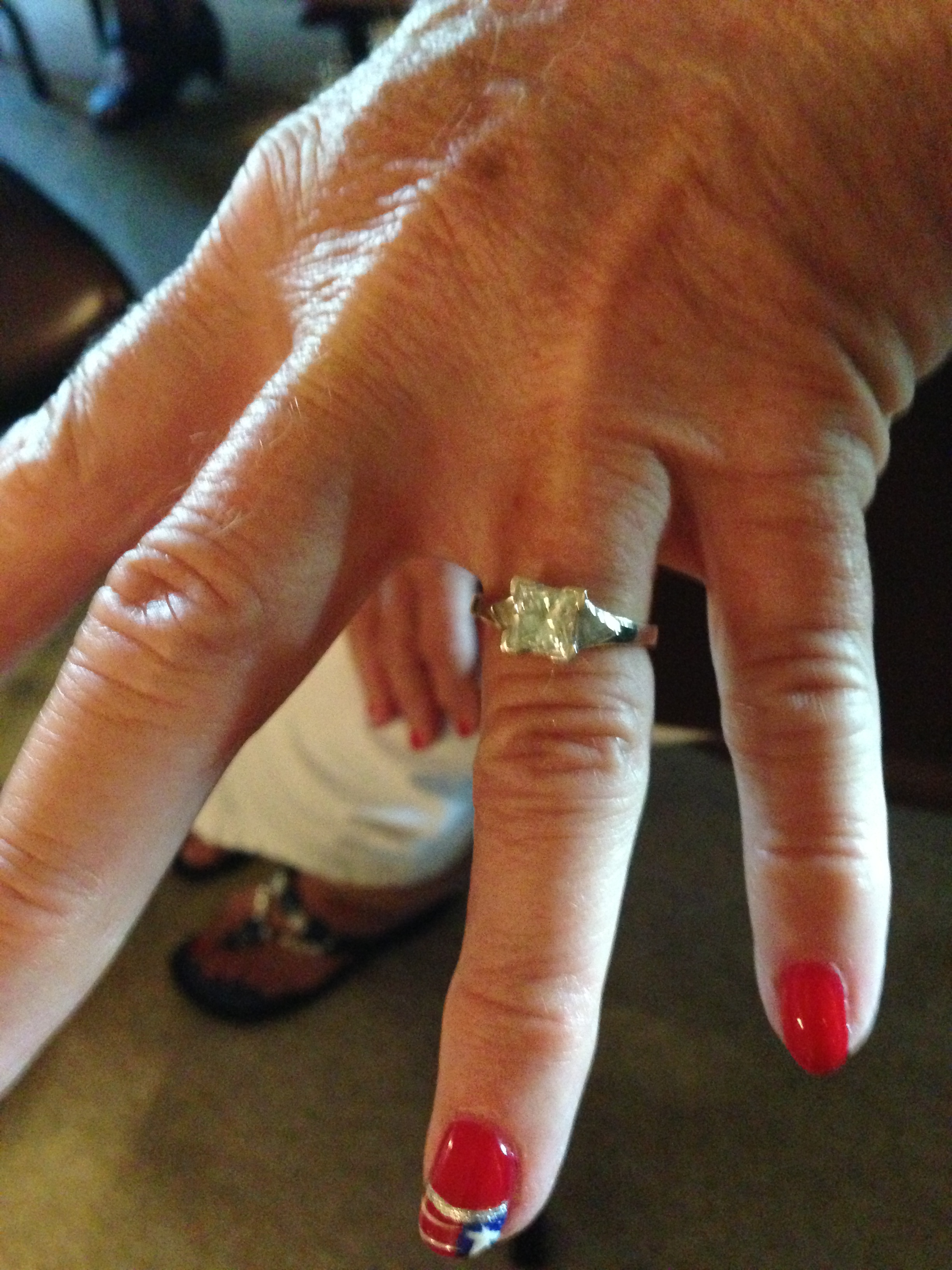 Mid-life romance, second marriage engagement bling.