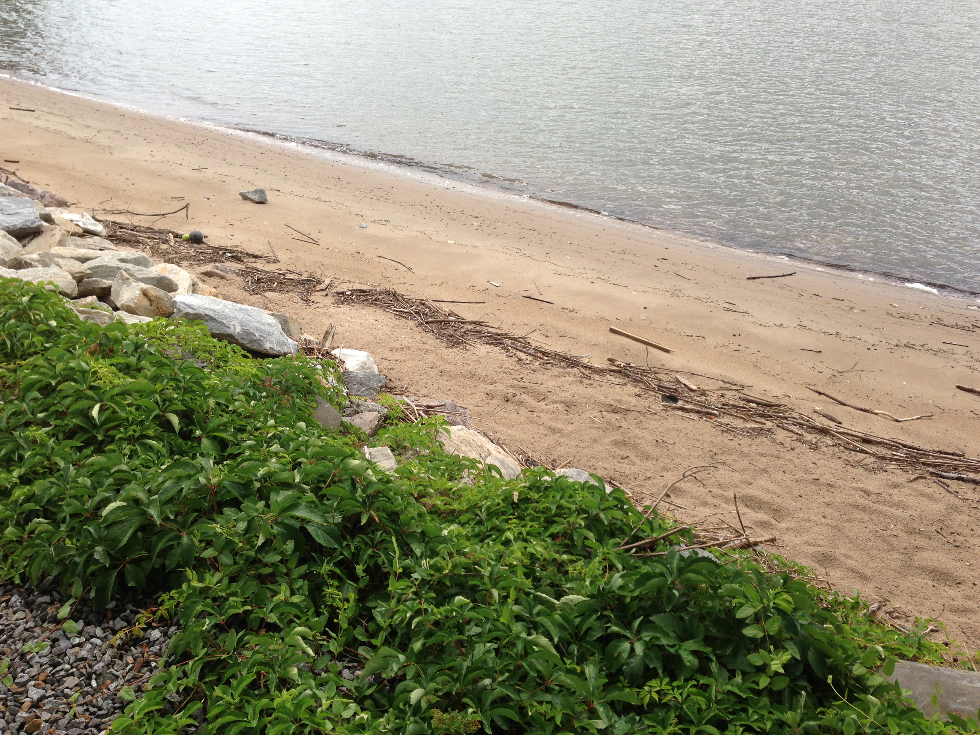 We went walking down by the Hudson River in the town where I grew up. Hadn’t been there in a while. The beach curved around, clean and bright.