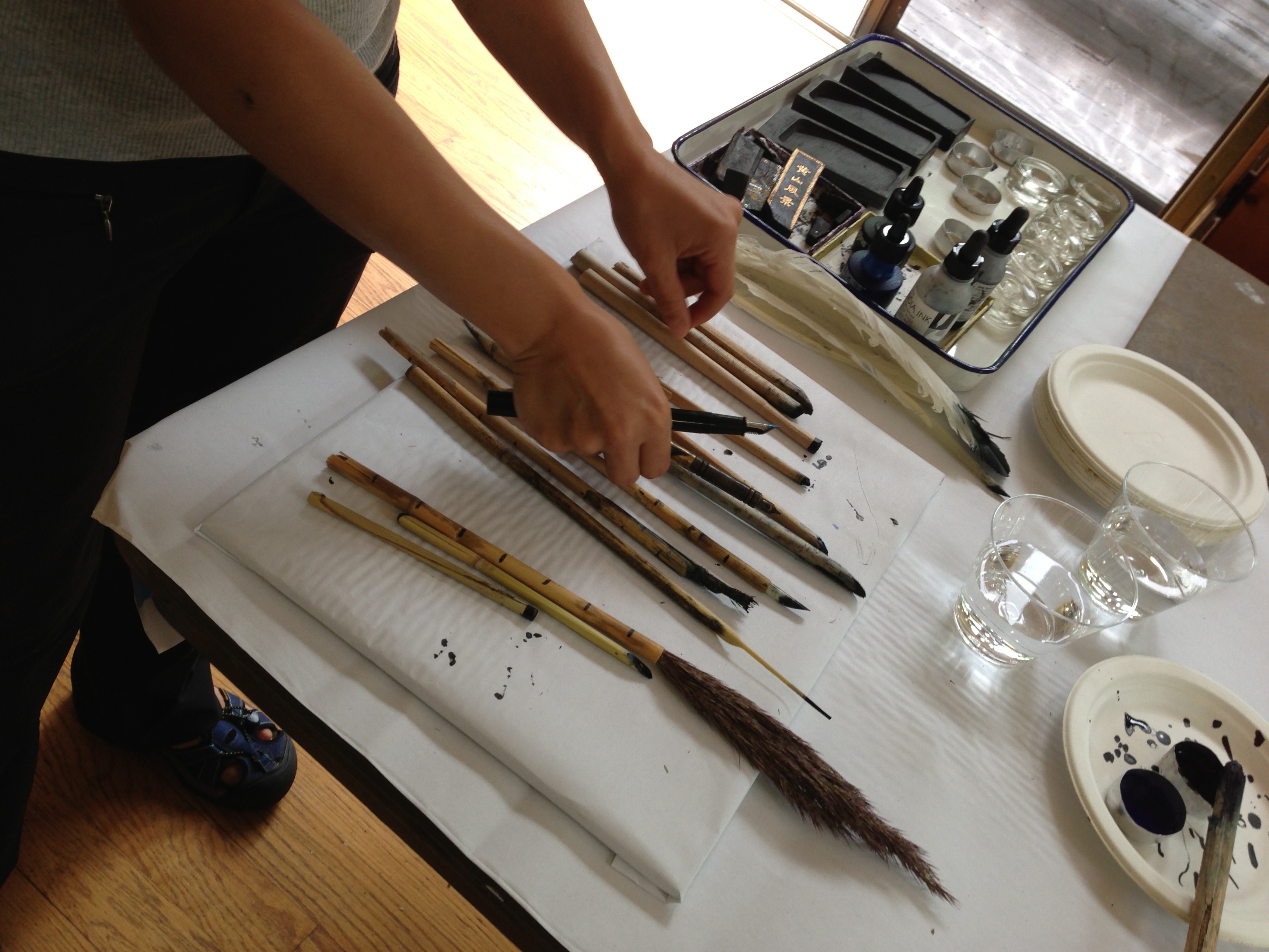 An airy display greeted my eyes upon entering the classroom, at the Teatown Lake Reservation just down the road from the Cabin. Paper and pens and brushes of all different sorts lay ready and waiting.