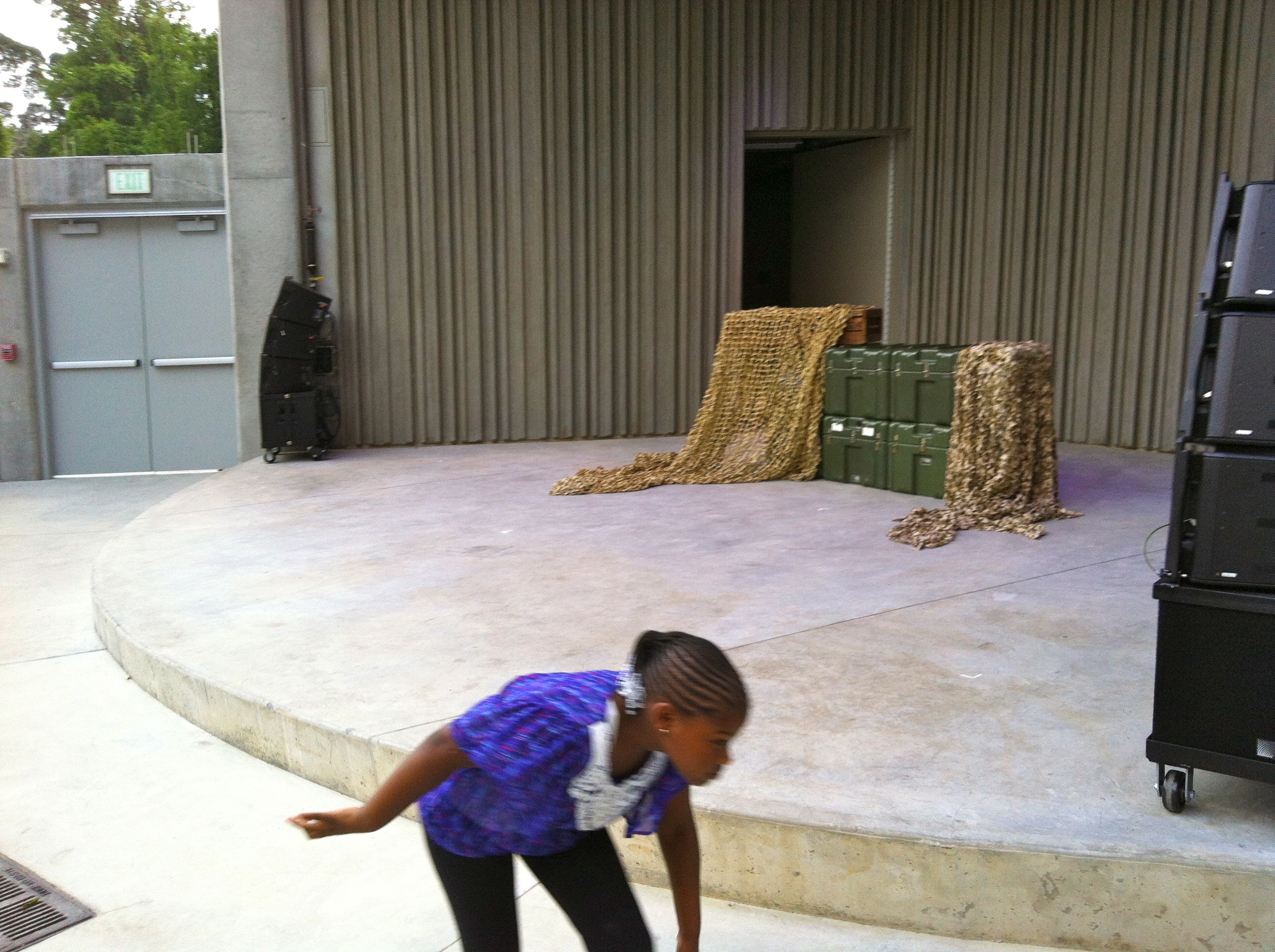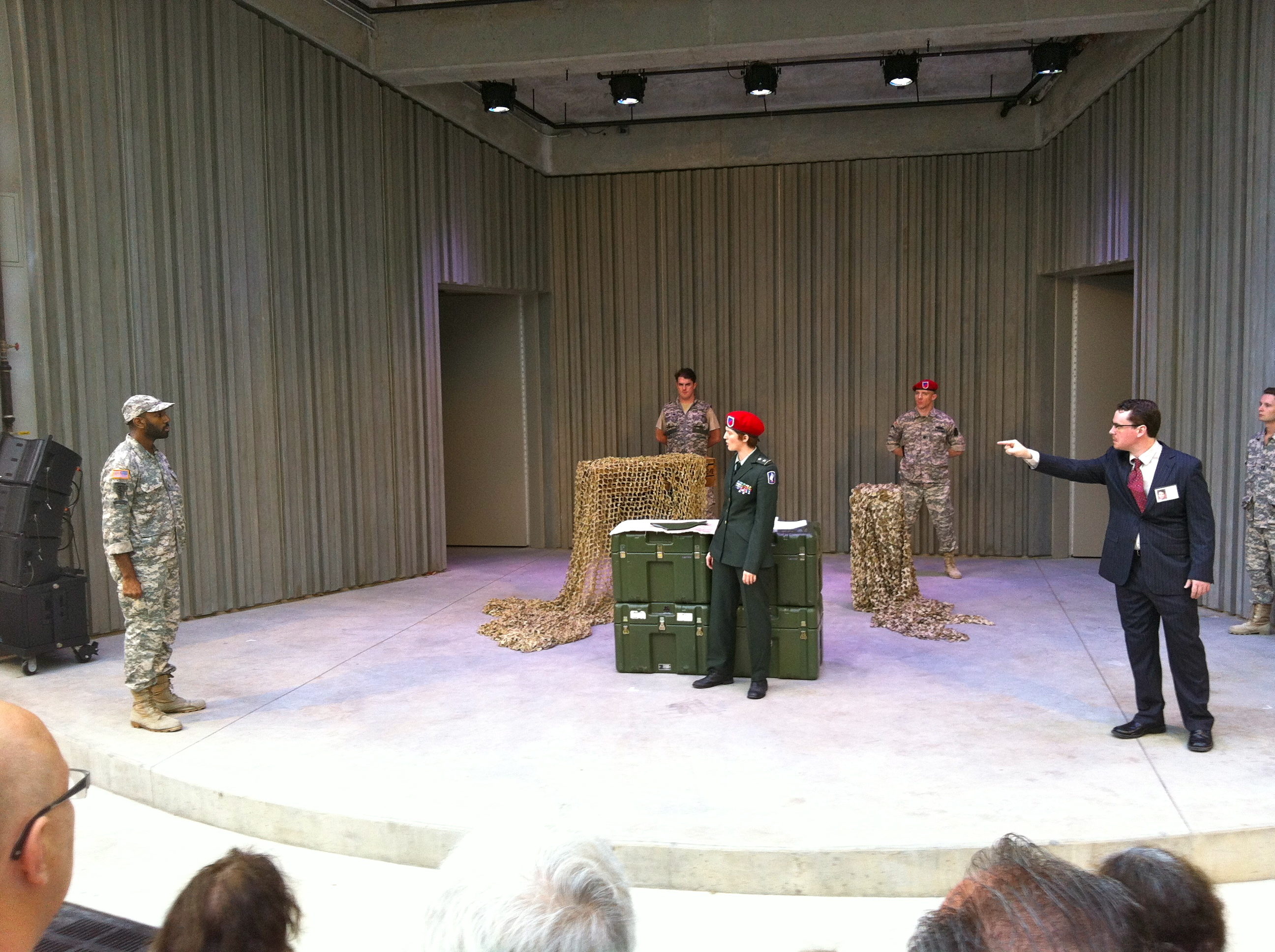 This Othello is staged on a U.S. Army base in Cypress. I’ve learned that this is a trend in Othello productions, to make the military contemporary and American. No tights for the guys.