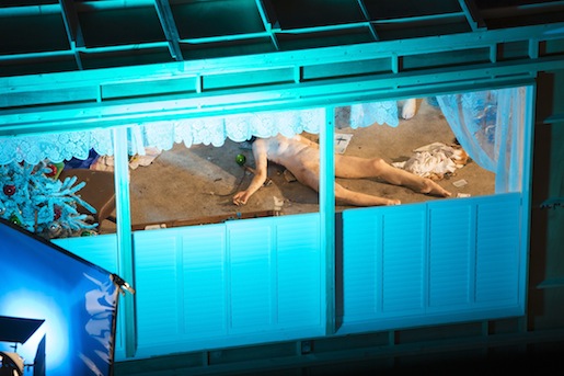 Spectators weren’t allowed in the forest, but in a smaller film arcade along the side we could observe chapters of the story. An unclothed Prince Charming wandered through its glades. Shocking events transpired. We could also visit another house in a retro ranch style that is actually a three-quarter-scale replica of McCarthy’s Salt Lake City childhood home. Alex Poots, Artistic Director of the Armory, has had a lot of explaining to do about the piece, and at one point he said, “it explores the vast and at times distressingly dark corners of the human psyche.” And the dark corners of some pretty sad vintage rooms, I would say.