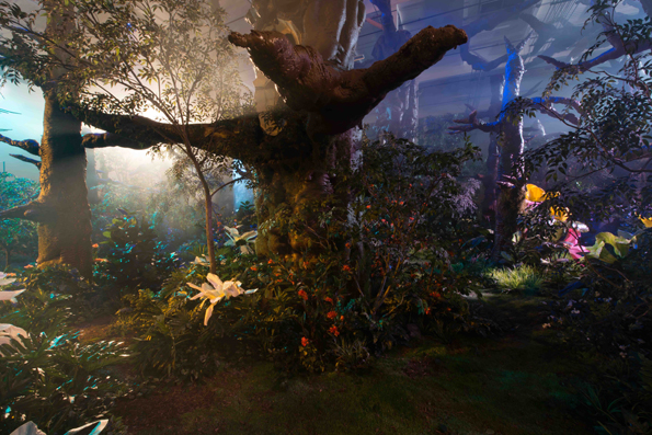 Under the blast of sound we couldn’t hear each other anyway. In front of us stood a large, Wonderland-proportioned forest of painted styrofoam trees and garish monster flowers.