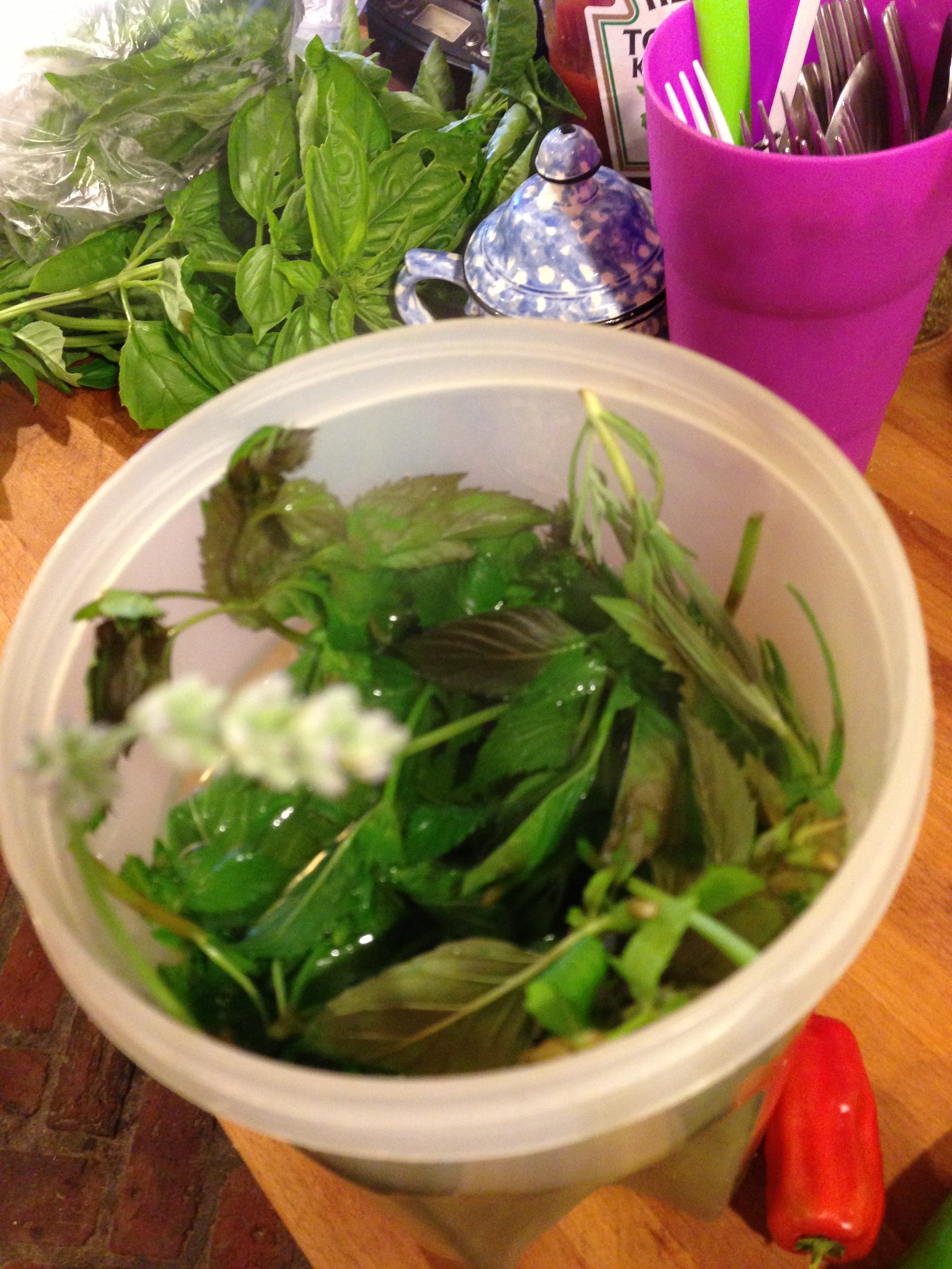 Walking down the stairs to the kitchen, the steps I usually complain about, to make herbal iced tea with chamomile, mint and lavender from my garden.