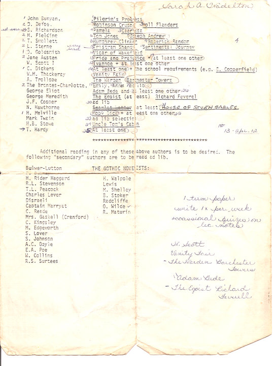 I was actually spoiled for college English after this, thought I knew all there was to know about fiction and spent my non-class-time hardly reading at all but scribbling diary entries, page-length prose poems and love letters.