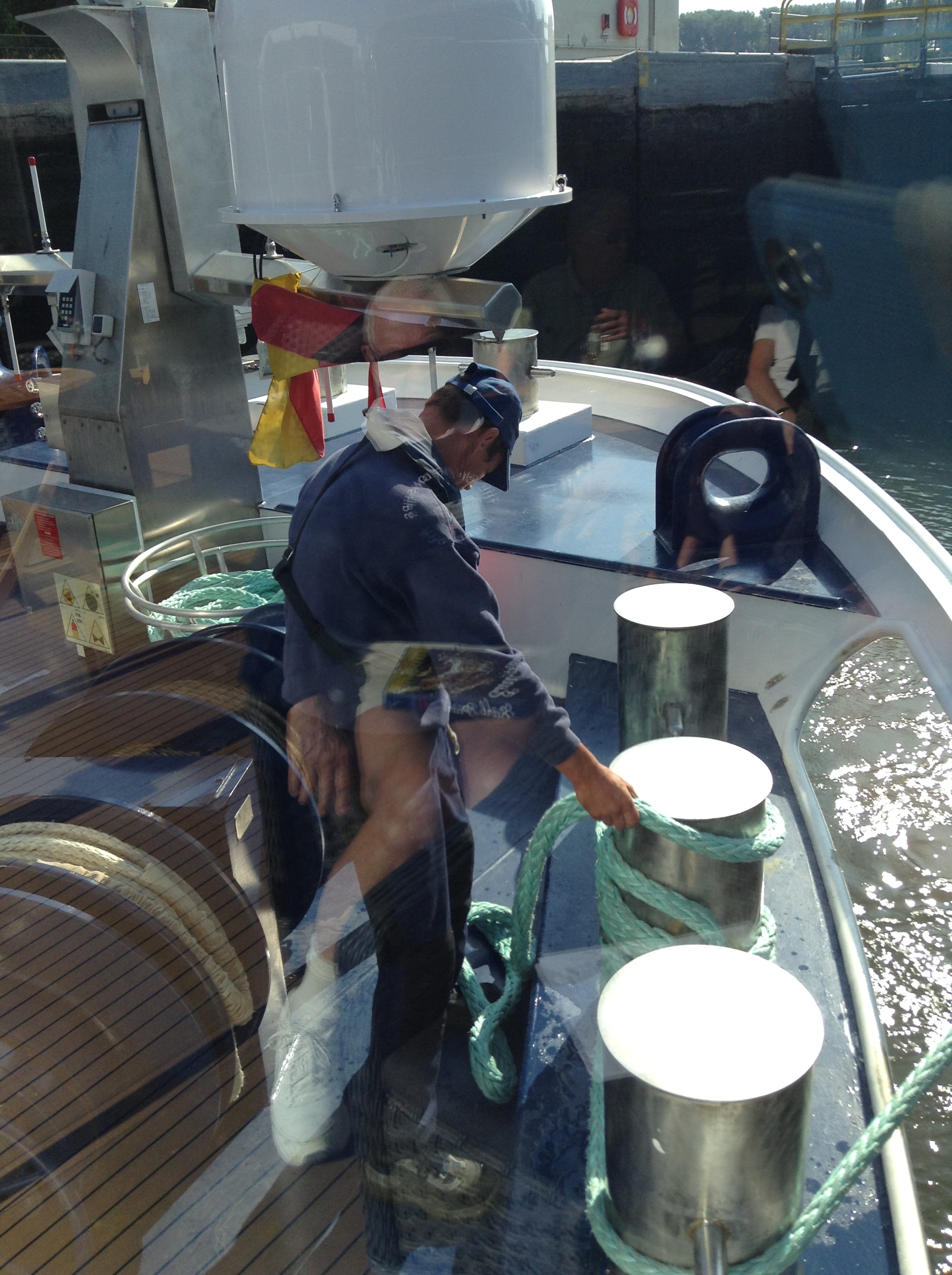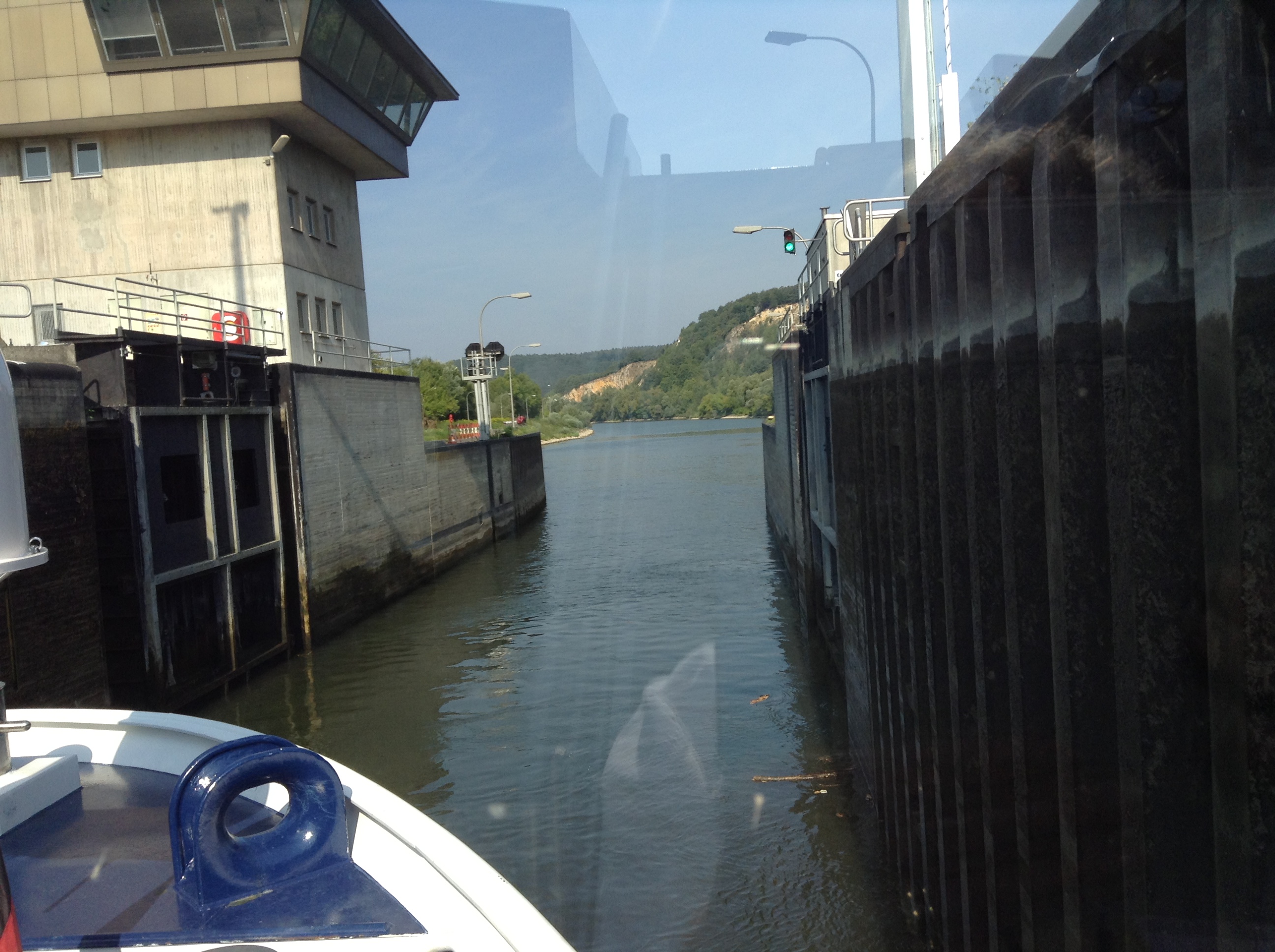 Our ship is 30.40 feet wide and the locks are all 39.40 feet wide, a difference of just two feet. Expert as our Dutch captain is, we still occasionally bump into the side of a lock with a noticeable thump.