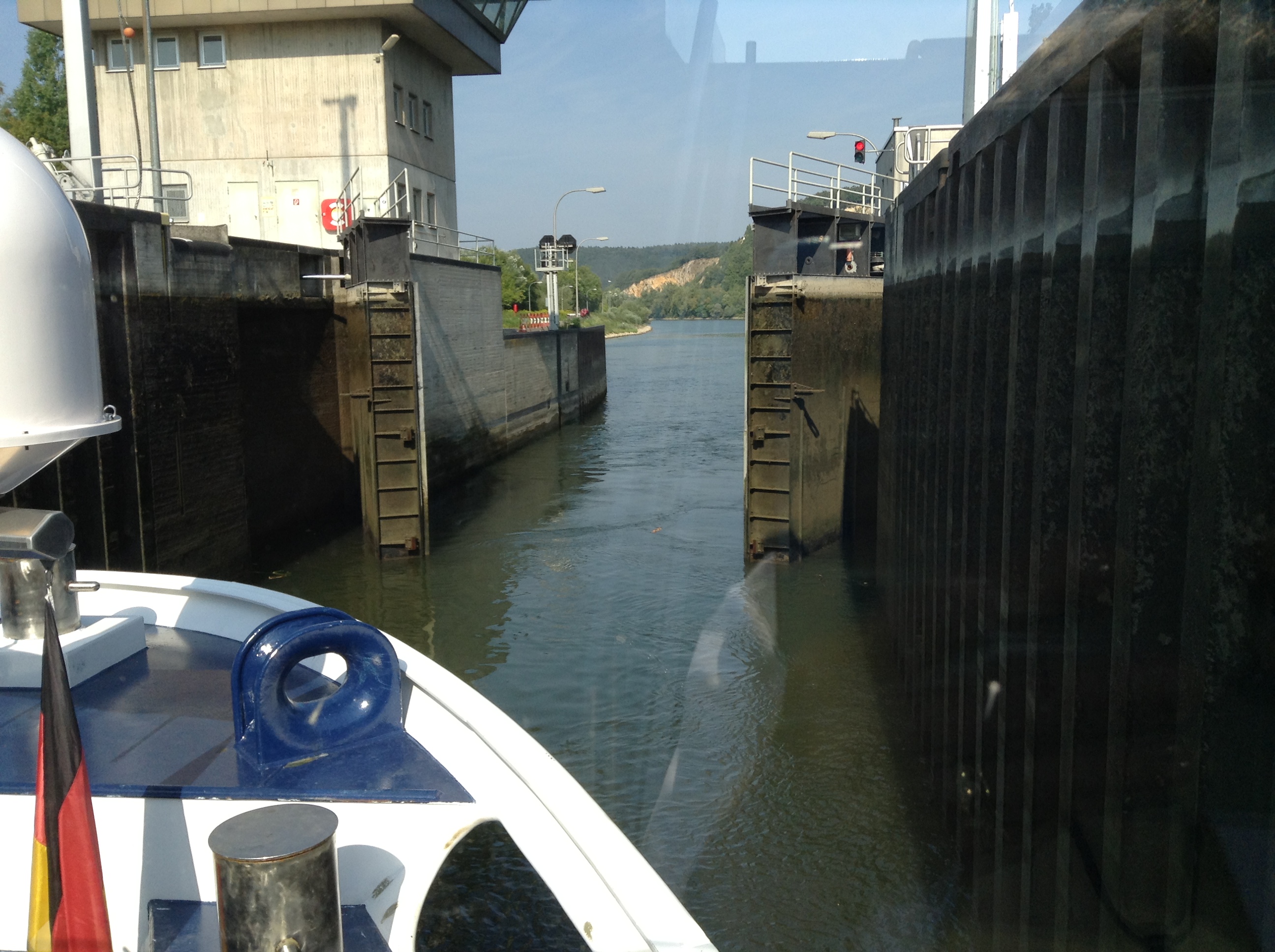 Here are pictures taken of the lock at Bad Abbach, which brings our ship 18.7 feet down.