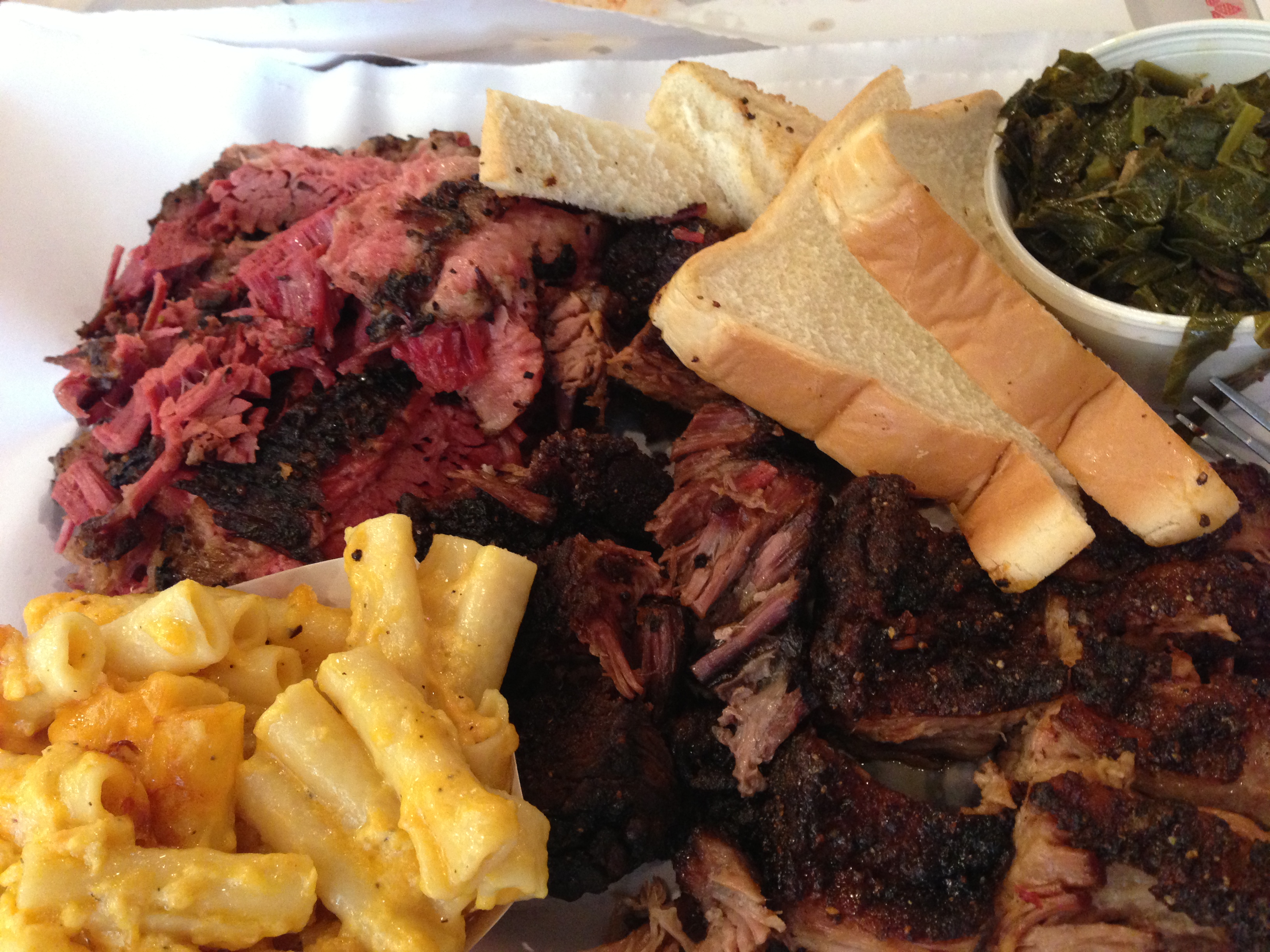 We went stoked with barbeque from a joint in the neighborhood, called John Brown Smokehouse (named after the abolitionist), that loaded our plates with piles of Kansas-City-style brisket ends and pinkest pastrami.