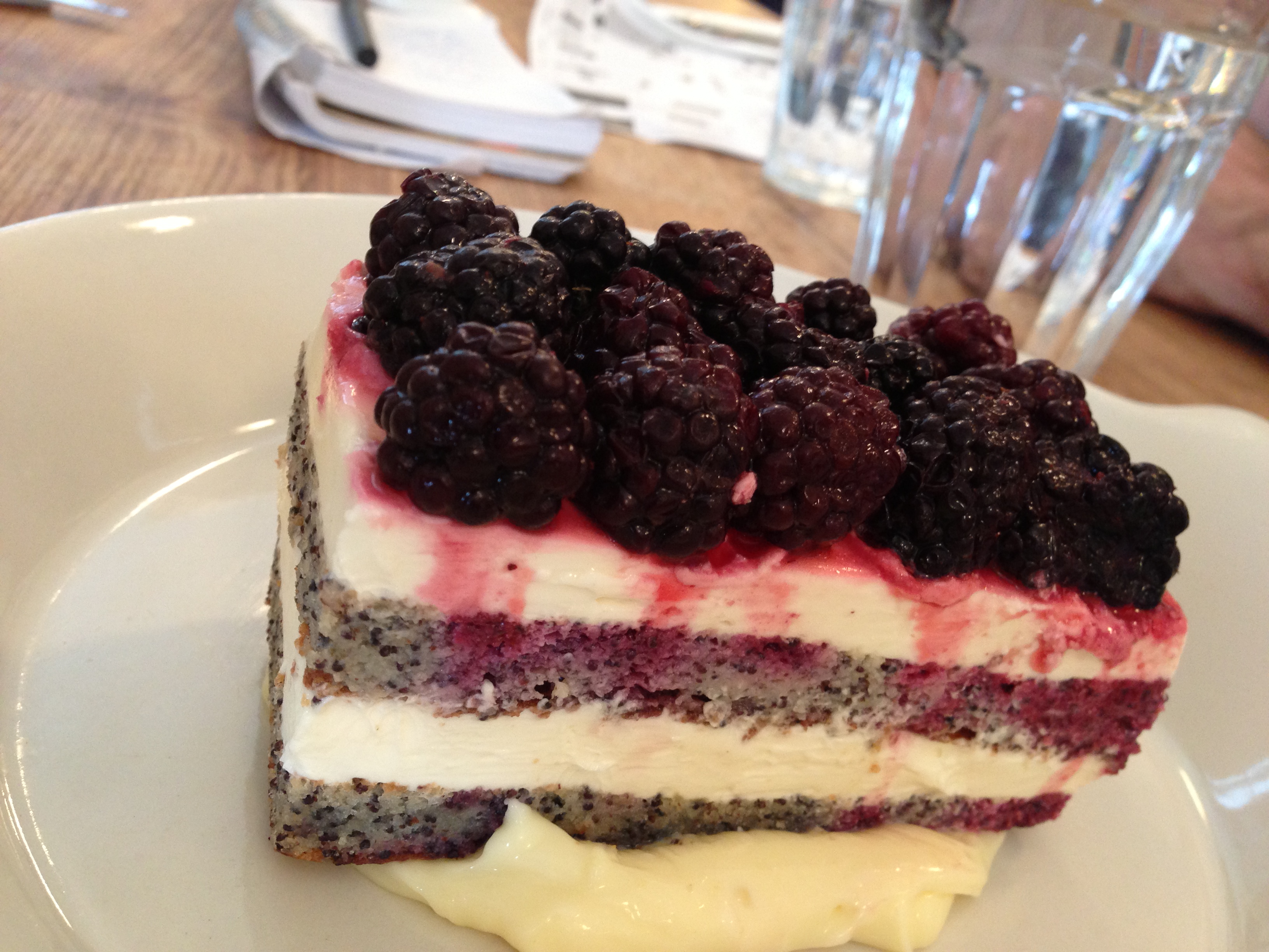 The fancy museum cafe served us coffee and exquisite poppyseed-blackberry cake with lemon curd. For nineteen dollars. Now that’s some high-toned art.