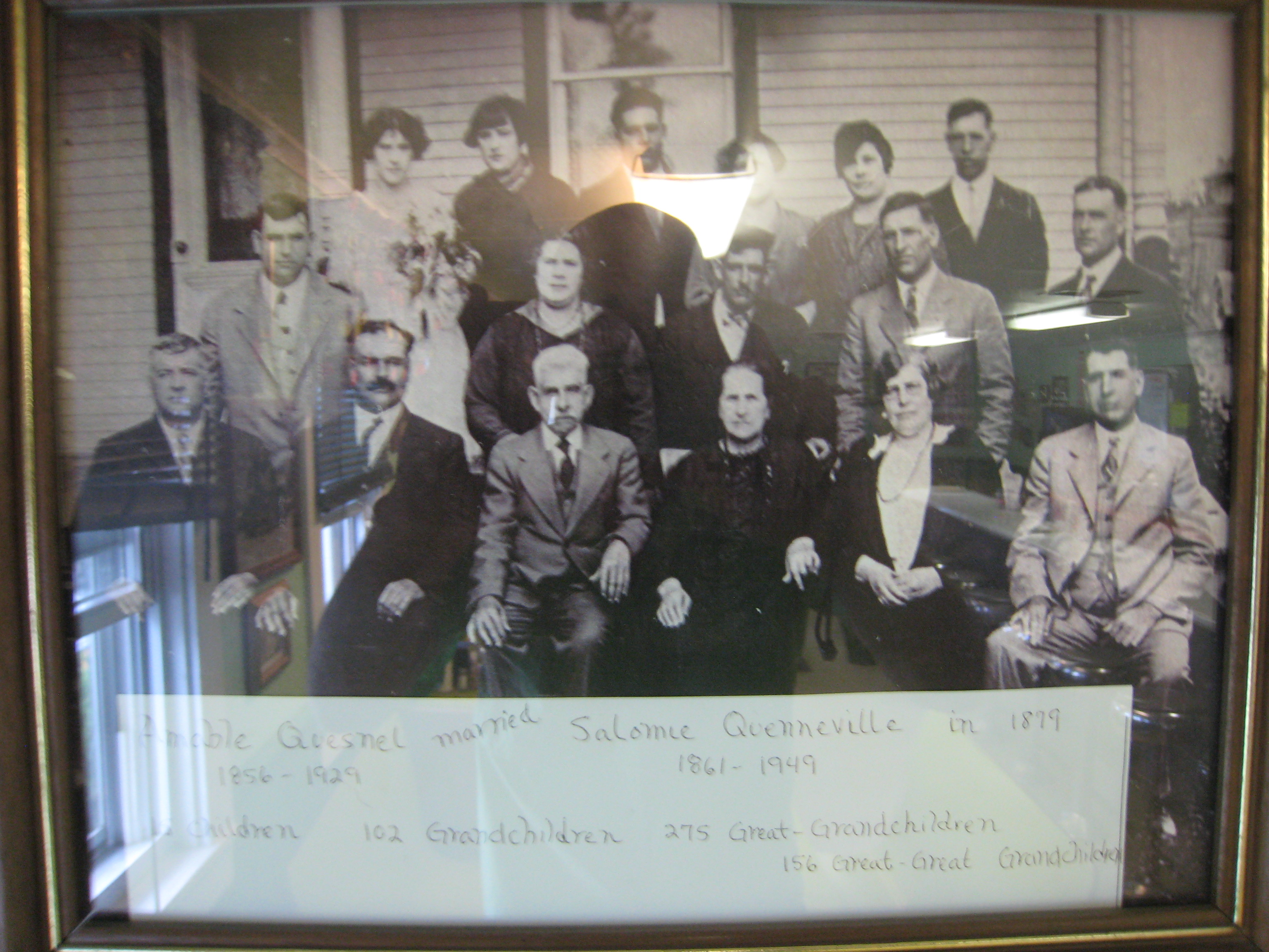 The walls are plastered with photos from days gone by, including this one of Amable and Salome Quesnel and their offspring.
