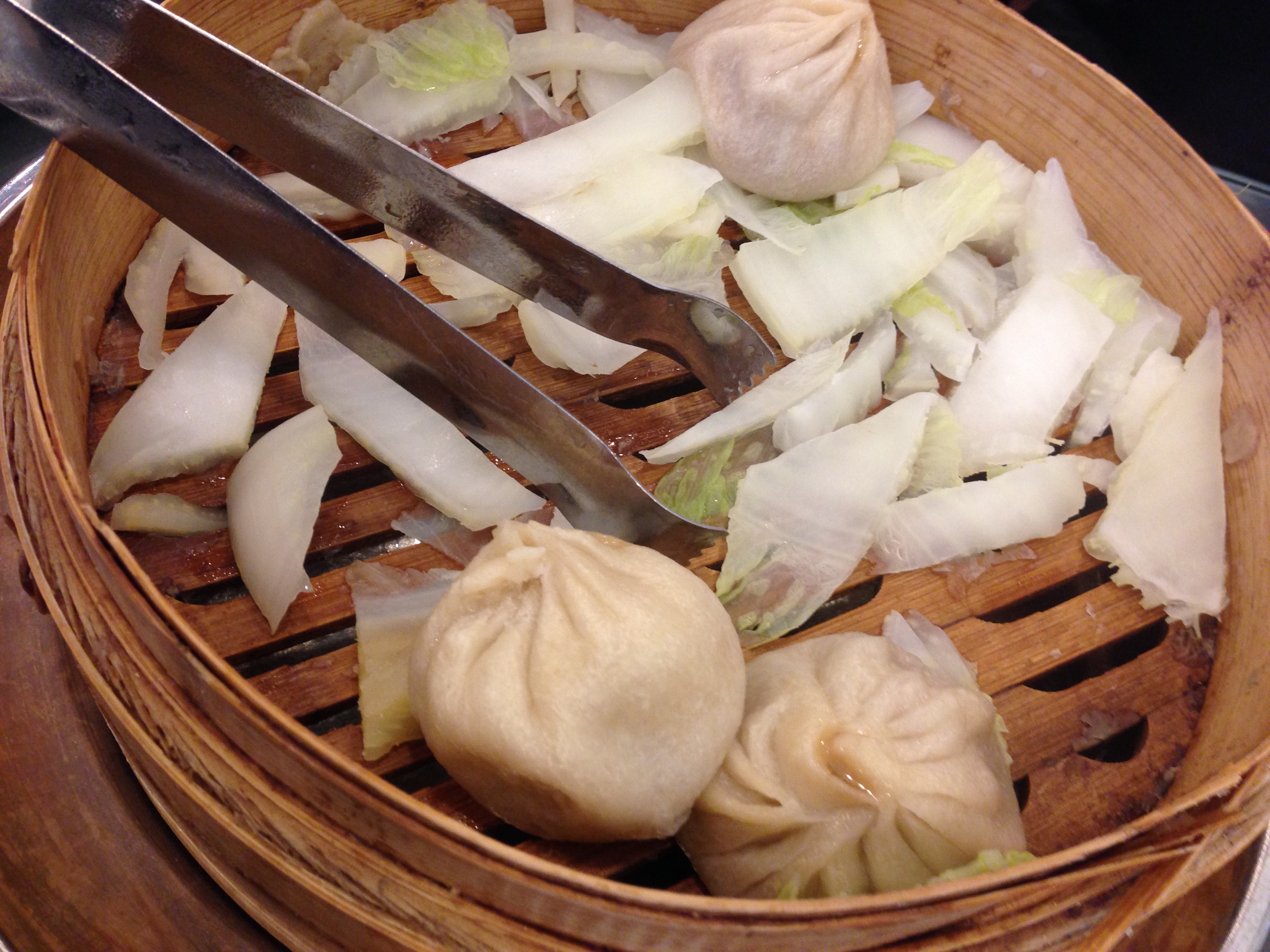 But how does the boiling hot soup get into the little parcels? You can probably guess. The cook puts gelled aspic inside the bun along with a little pork or pork/crab mixture, and it melts deliciously as it steams. A dish of vinegar with ginger slivers is served alongside, but we ripped into the buns too fast to pay any attention to them.