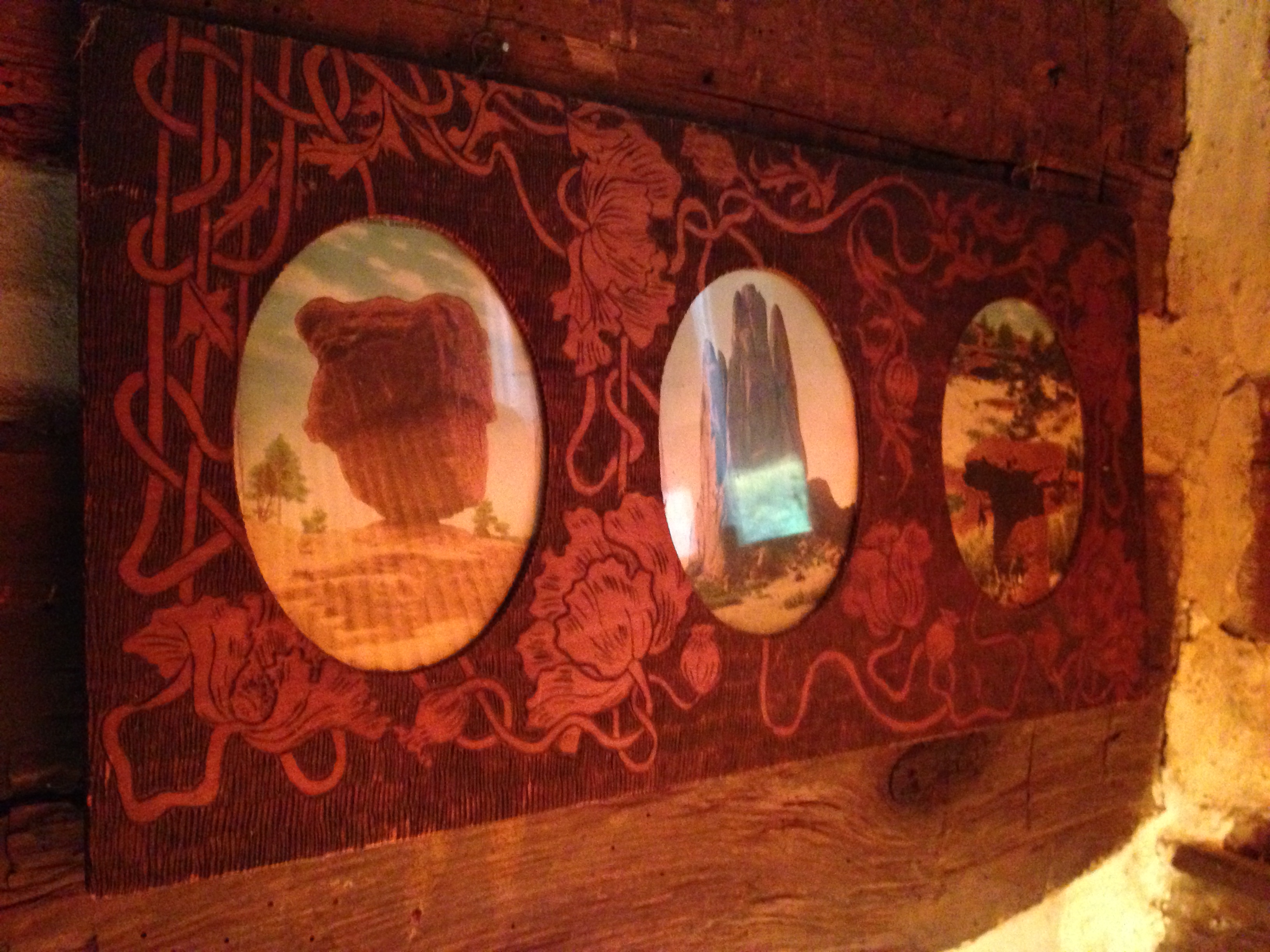 I do like things that are a bit stained, worn, faded or torn. Things that have the spirit of the vernacular in them. That show the human hand. It’s not outsider art when it comes from your own relative. One vintage artwork in my house was the creation of my great-grandmother Lockie Hillis, three landscape postcards she collected on a trip to the Panama Pacific International Exposition in 1915, which she mounted in a wood-burned frame (she herself burned the wood).