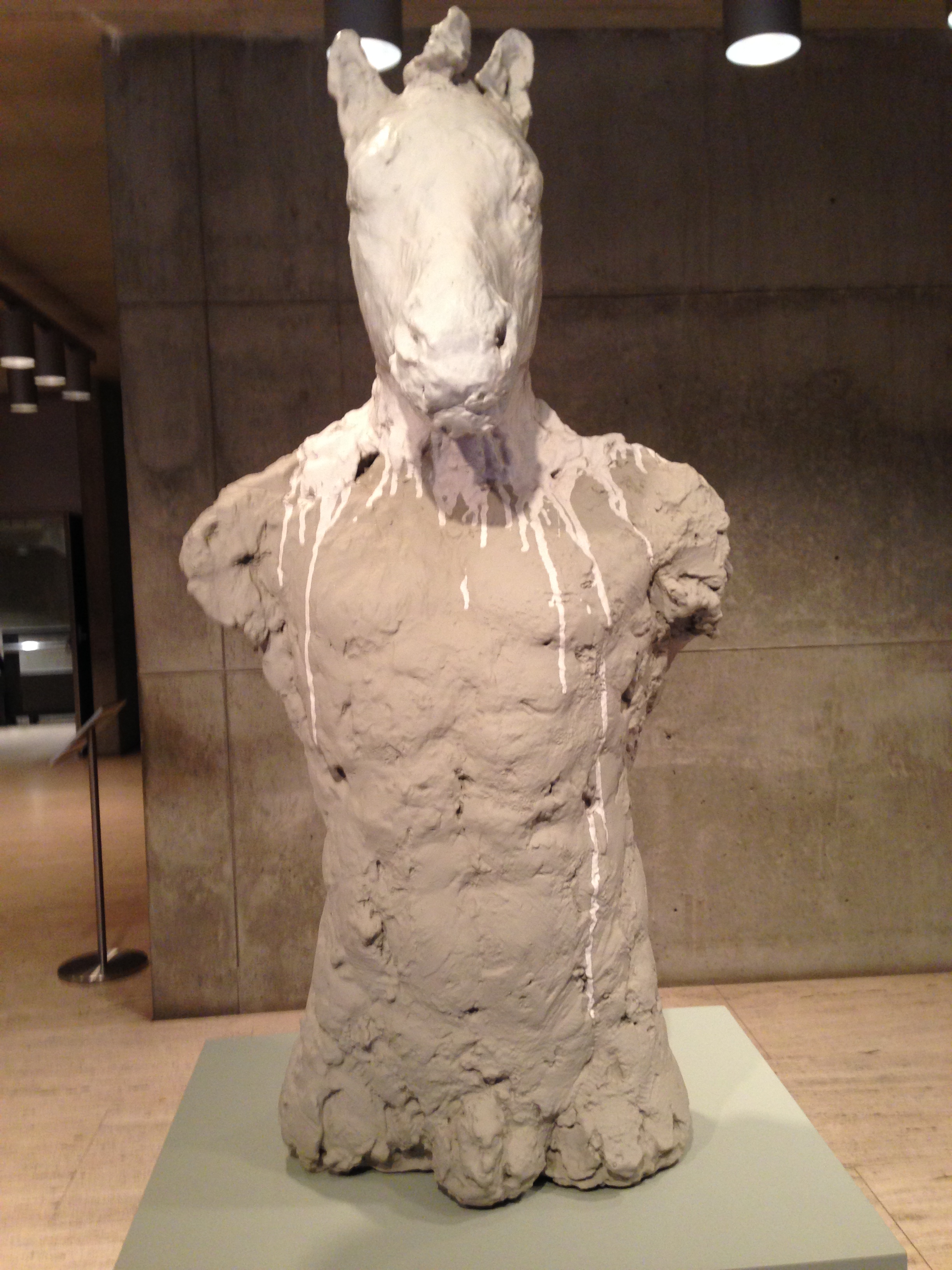 We couldn’t help but be stopped just inside the glass doors as we were coming in by a much more modern work. What is that? I said to Wendy, puzzling it out. A minotaur? A centaur?