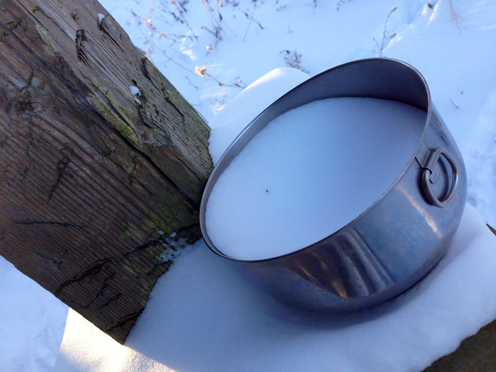 When you’re hungry, collect the snow and stir in some milk. Add sugar and vanilla to taste. Sprinkle with cinnamon if you like.