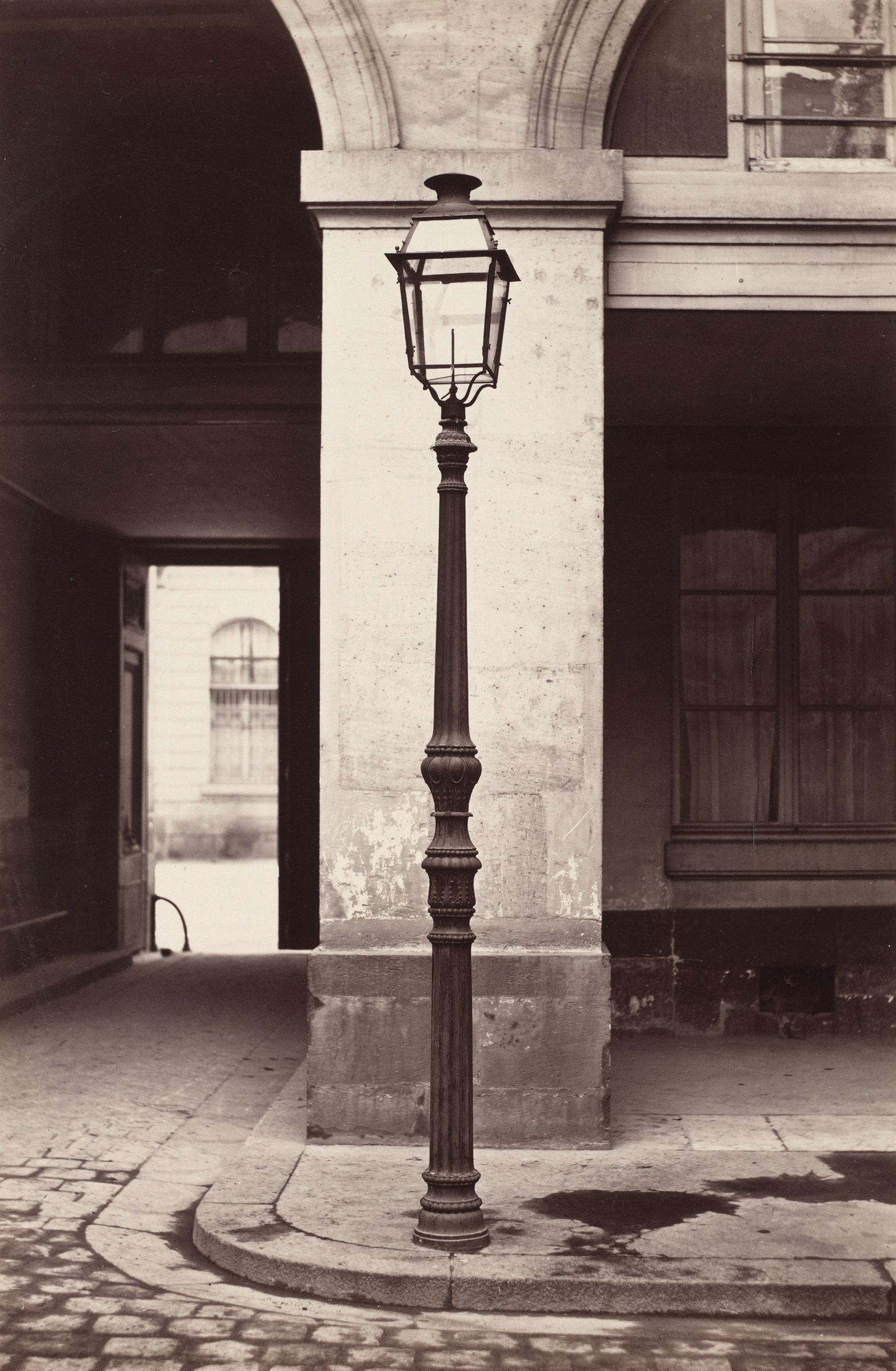 After documenting the streets slated for urban renewal, Marville was assigned to capture for posterity some of the newfangled improvements Haussman had installed. These included two features that were futuristic at the time. Lamposts. There now stood some 20,000 gas street lamps where before there were none. Marville photographed dozens of them.