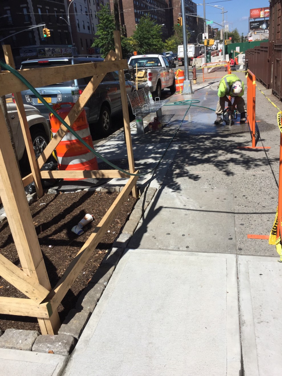 Like I say I count my blessings. Small ones. That my job is inspecting and writing up reports, for one. That the air today, though hot (90 now) is dry enough to feel comfortable. That a man at the SRO behind our worksite, sitting in a wheelchair, smiled ear to ear when he saw me, repeating “can I help you?” as he did the first time he saw me and made the joke yesterday.