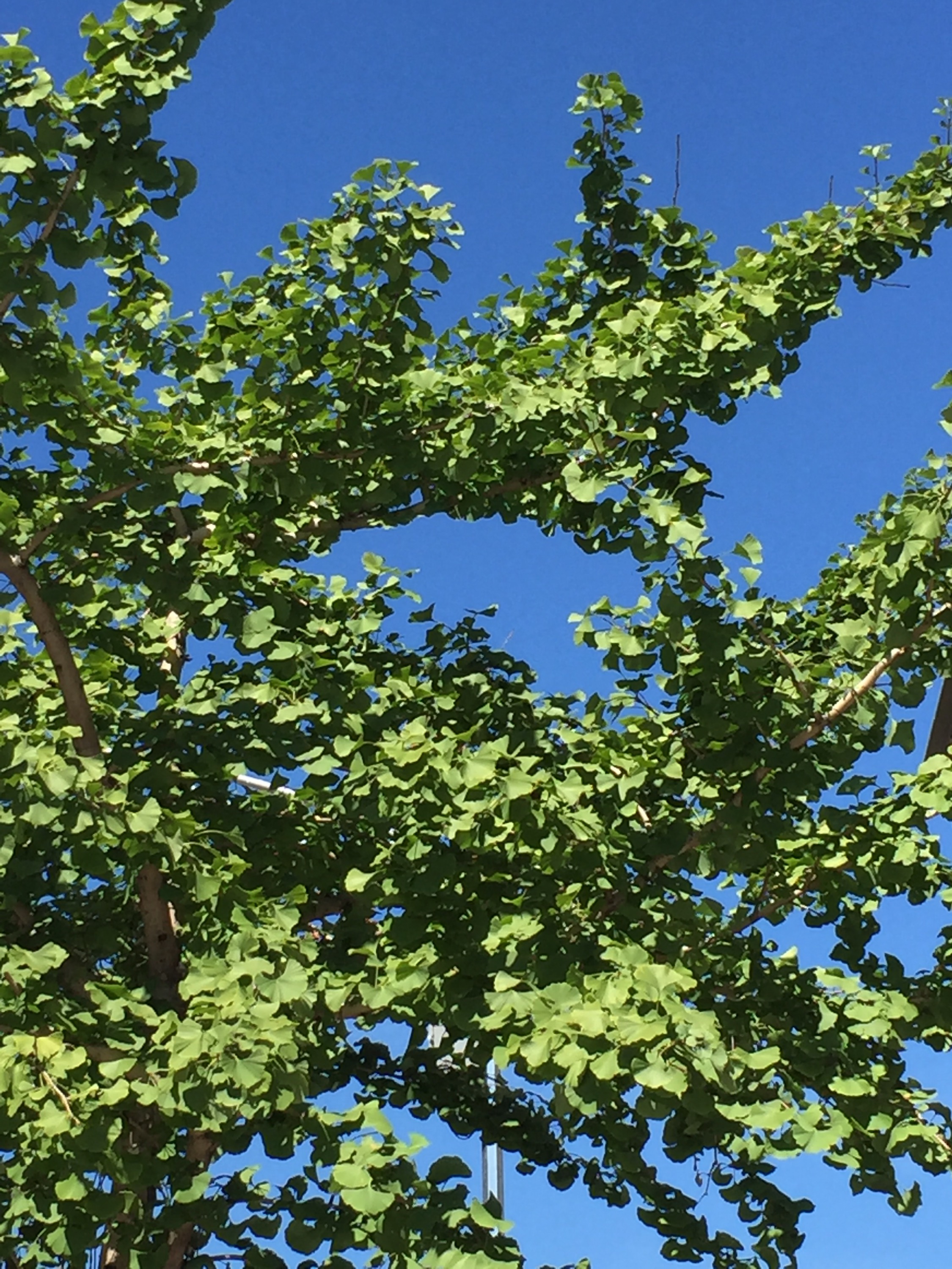 I am blessed that the ginkgo above my head is sweet, healthy and green.