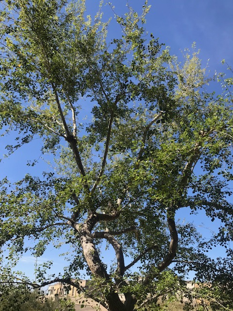 Sitting out on the balcony on a cool (80 degree) day in late March, my mother showed me a tree she called “the Sysyphus tree.” Rough bark, winding branches, small leaves aflutter. It has to be pruned twice a year so the sunlight will be allowed to poke through.