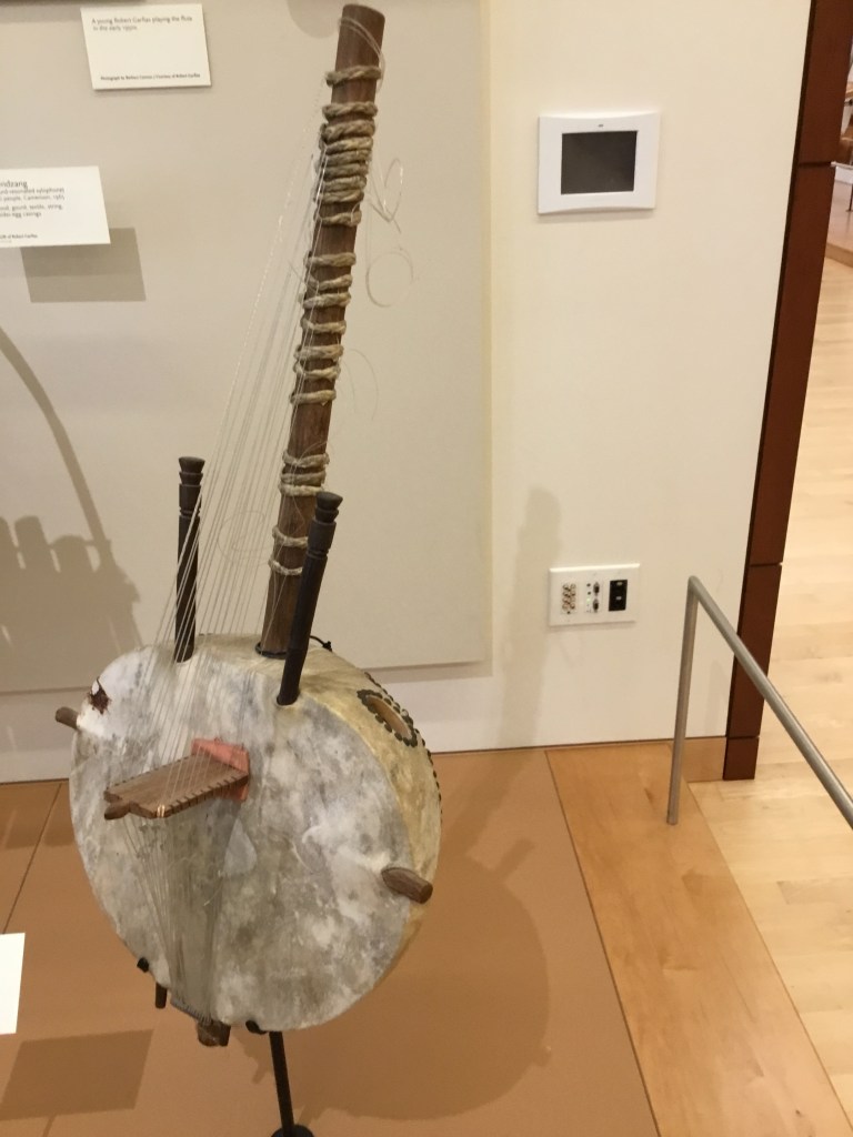 Which is why when I went back in the museum to the American instruments I was fascinated by the wood instruments, all of them made by hand. There are thousands of string and wood designs throughout MIM. Some are put together with animal skins, like this harp-lute from Guinea.