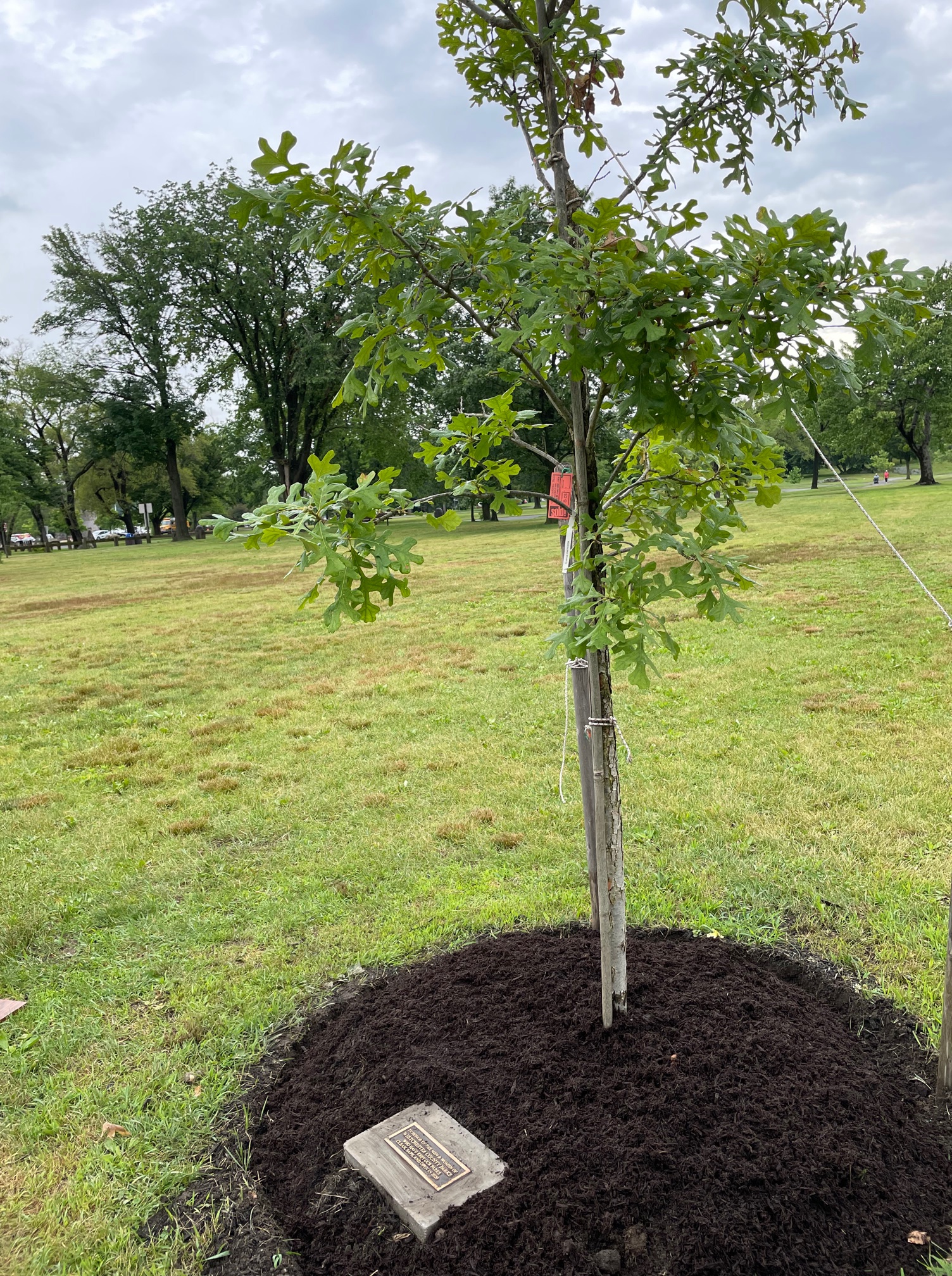 The Foundation used its grant money to select a three-inch caliper ball-and-burlap tree. It would stand across from New York’s first COVID testing site, an imposing series of white tents. Today it was being dismantled. Hope!