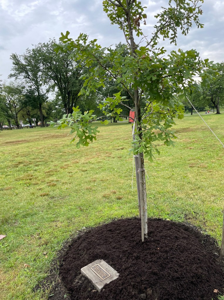 when you plant a memorial tree. The Awards Committee of the New York State Urban Forestry Council sought applications last fall to reward communities that had been a Tree City USA for at least the past five years. I went to Glen Island Park in New Rochelle to celebrate one of the winning entries. Competitors had to describe why they deserved what we were calling a “big tree”: “a large specimen tree in a prominent site within the community, accessible to the public.” This effort was made in conjunction with New Rochelle’s 28th year as a Tree City USA.