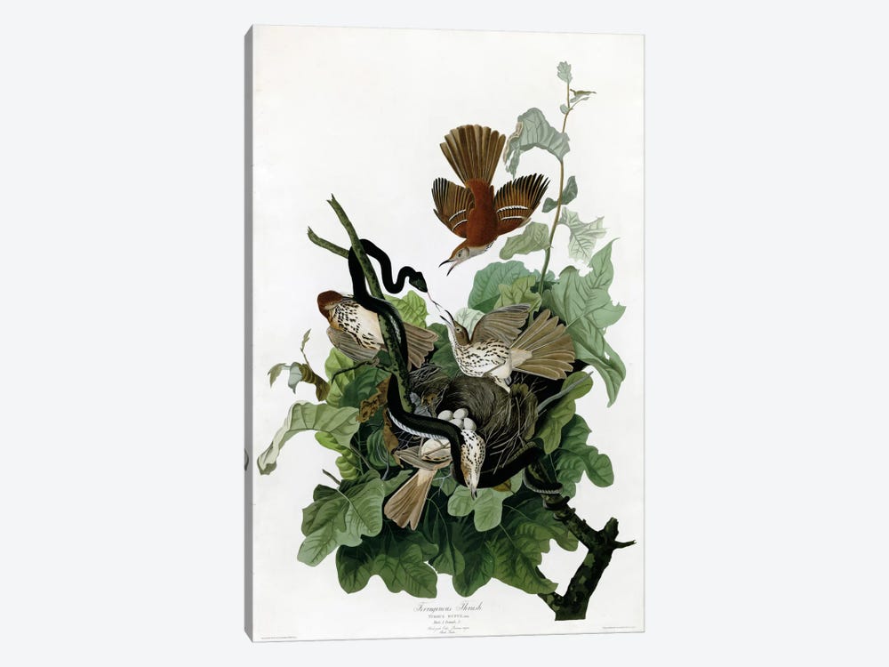 John James Audubon, for whom the Audubon Society is named, painted wonderful renditions of birds and sometimes snakes. See his Ferruginous Thrush, from Birds of America.