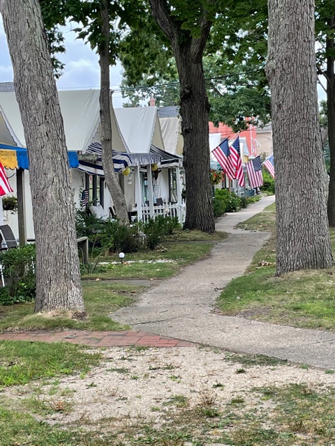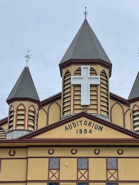 Ellwood Stokes founded Ocean Grove in the mid-nineteenth century and it rapidly became a Methodist camp meeting community with regular revivals at over which he presided. Pastors still come to the place to share their wisdom, although the subject matter differs a bit. When we leaned into the godly precincts there was an avid audience of worshippers laughing as the minister described his wife’s morning sickness and linked it to Godliness.