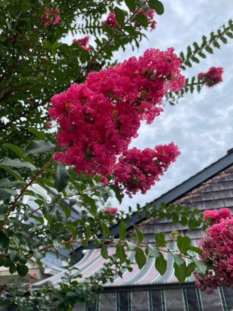 Flaming crape myrtle in almost every yard.