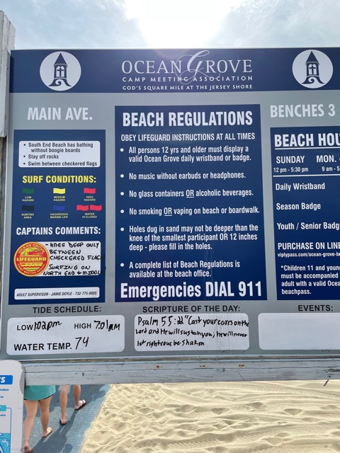 If you want to find out the conditions for swimming at the delightful beach you get a biblical proverb too, something to ponder as you tan. Bruce Springsteen grew up right down the way, but I have a feeling he did not come here for spiritual inspiration.