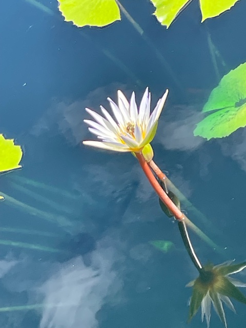 Step outside. The lily pool, like everything else horticulatural here, has been annotated for your edification.