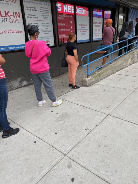 Why should anyone care? That toddler in her stroller, buried in fluffy pink, is so comfy, so cute! And girls in pink grow up to be perfectly capable pink-attired woman, like this one awaiting her Covid shot.